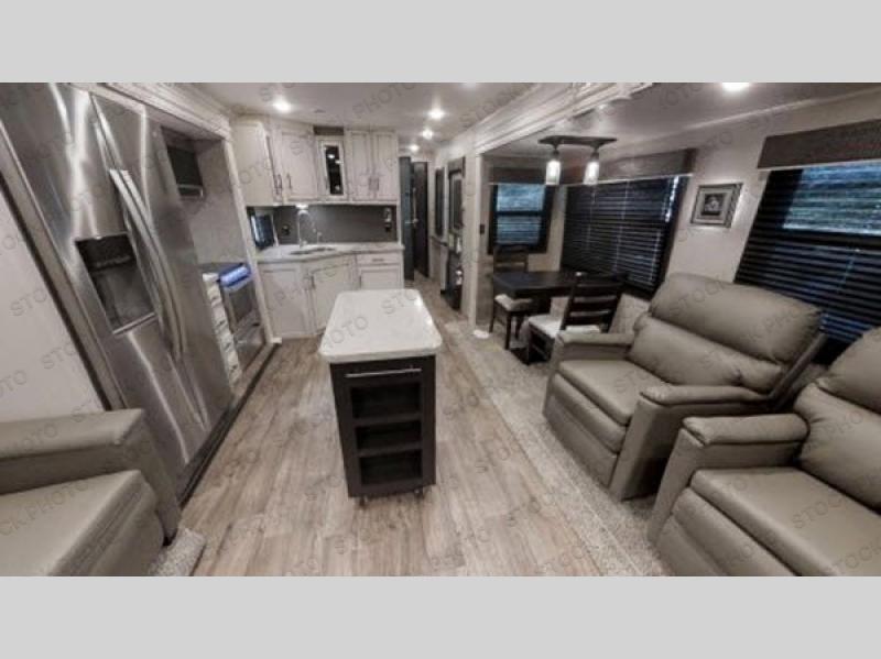 These famous Jayco Eagle fifth wheels and travel trailers come with a long and rich history of quality construction, modern styling, and innovative design! The 4-Star Handling Package comes standard on every model, and it includes reliable features, like 16" Goodyear Endurance tires, Dexter axles with Nev-R-Adjust brakes, E-Z Lube hubs, and MORryde CRE-3000 rubberized suspension. The MORryde StepAbove entrance steps with blue LED lights will provide a solid entry system so that you don't worry about falling over as you bring your luggage inside, and you will also rest assured knowing that the entire unit has been crafted with a StrongholdVBL aluminum-framed, vacuum-bonded gel-coated fiberglass, a Magnum Truss roof system, and a Climate Shield zero-degree tested weather protection.