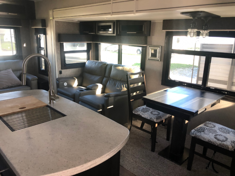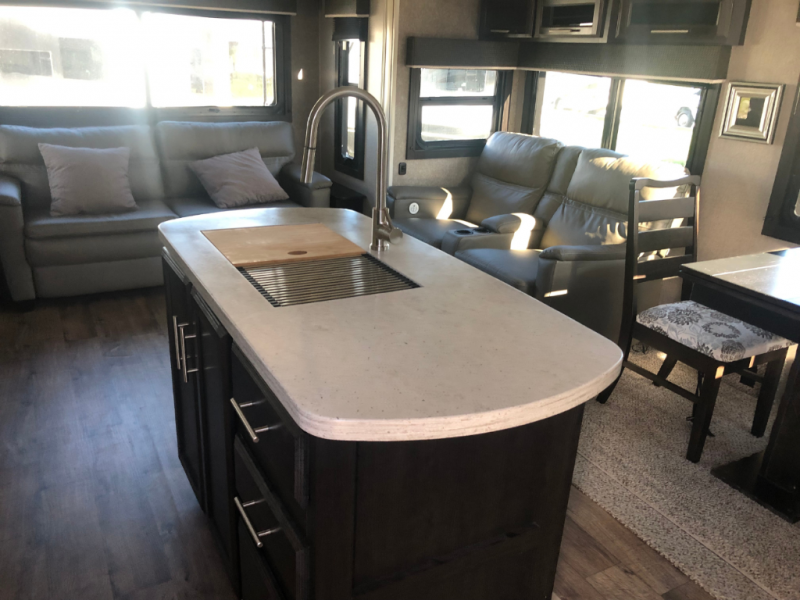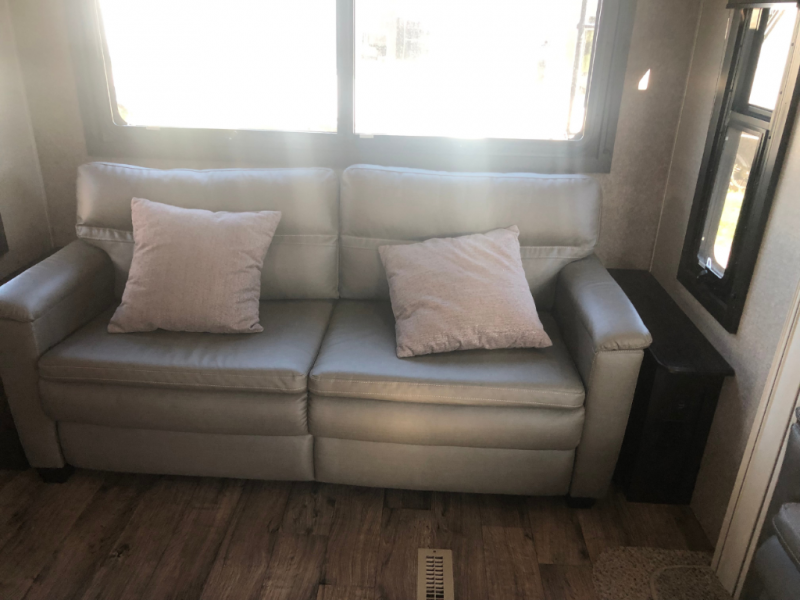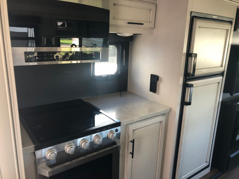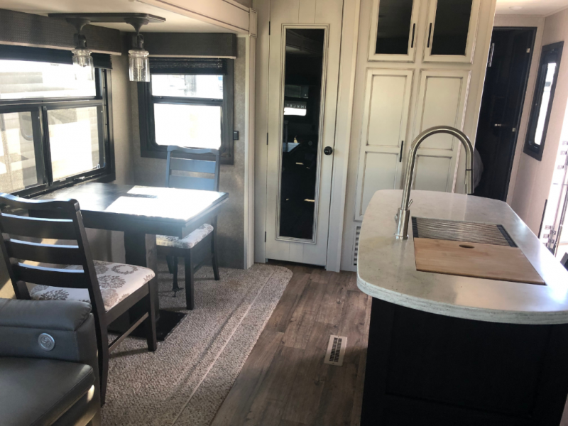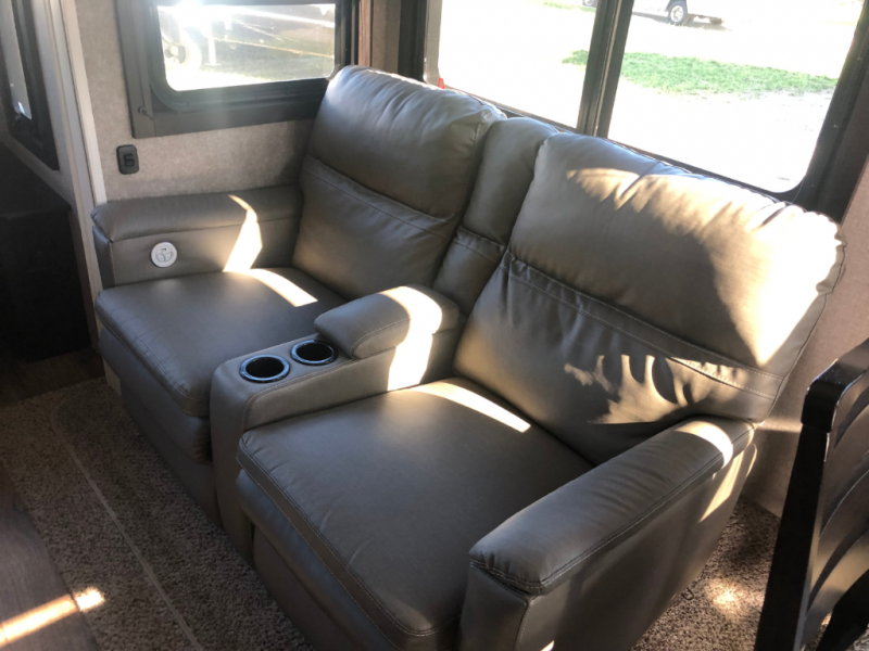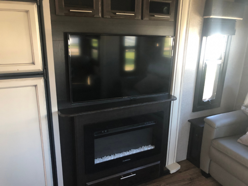 How would vacationing in a popular half-ton towable Eagle HT travel trailer with a rear tri-fold sofa and a kitchen island sound in your next RV? You will also appreciate the two opposing slides because they offer an open feel while you make meals in the kitchen with stainless steel appliances, a large pantry, and a handy coat closet/pantry. The free-standing dinette is a great place to eat, play games, and even do some work if you need to. You might like to add an optional LED fireplace under the LED HDTV for those chilly camp outs. Storage is no issue in this model with its huge pass-through storage that includes a universal docking station along the exterior, its triple wardrobes in the master bedroom, and its overhead cabinets throughout. You might also decide to add an option or two such as a king bed, a washer/dryer, and/or 16" Goodyear tires.