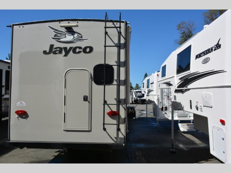 With each Jayco Eagle HT travel trailer, you can travel with your half-ton truck! The interior offers features such as a residential Serta mattress with under-bed storage, a CPAP-prepped bedroom, large windows, solid hardwood slide fascia, residential flooring made in the U.S.A., and dual USB charging ports in the kitchen and bedroom. The StrongholdVBL aluminum-framed and vacuum-bond laminated gel-coated fiberglass exterior walls including the rear wall and slide room end walls, the fully enclosed and heated underbelly, the industry-exclusive HELIX cooling system, the JaySMART safety markers and reverse travel, and the 4-Star Handling package just makes traveling safer and easier! Choose the model that suits your family's needs and wants, and start camping the right way today!