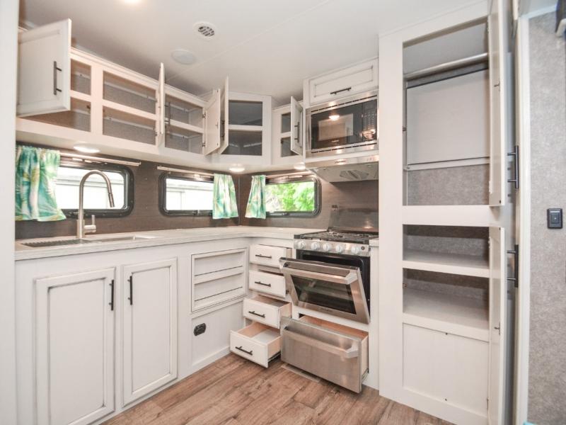 The StrongholdVBL aluminum-framed and vacuum-bond laminated gel-coated fiberglass exterior walls including the rear wall and slide room end walls, the fully enclosed and heated underbelly, the industry-exclusive HELIX cooling system, the JaySMART safety markers and reverse travel, and the 4-Star Handling package just makes traveling safer and easier! Choose the model that suits your family's needs and wants, and start camping the right way today!