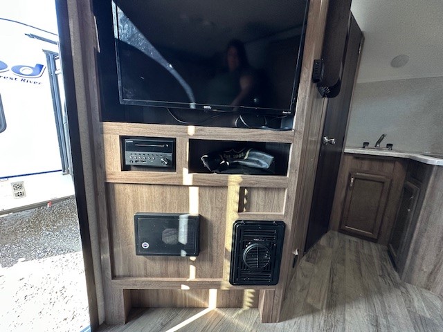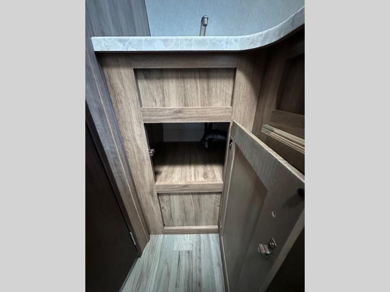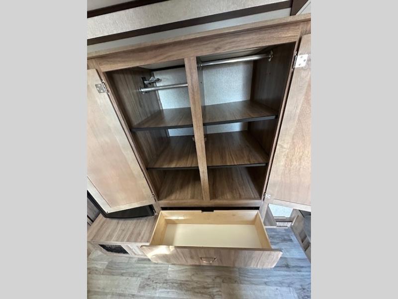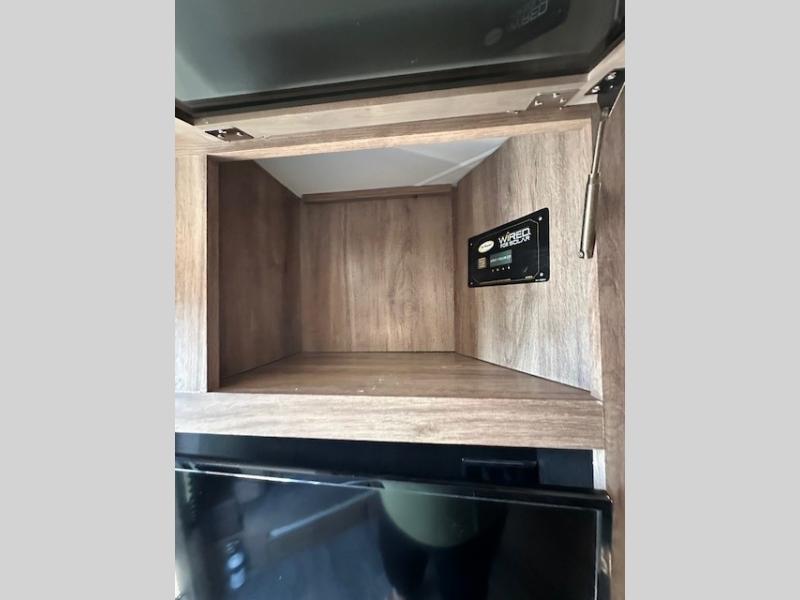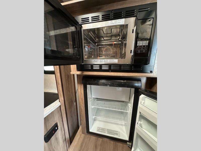 Ditch your old tent and upgrade to this Hummingbird travel trailer for more space and comfort. The single slide out provides more floor space and here, you'll find the 3 cu.ft. 2-way refrigerator and convection microwave to prepare all your meals. There is even a wardrobe/pantry for paper goods and snacks. Plan out your day outside hiking, biking, or swimming and the rear corner bath will allow you to freshen up each night before bed. This model includes a queen-size Murphy bed that when not in use, can fold away and you can relax on the sofa in front of the bed.