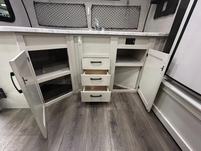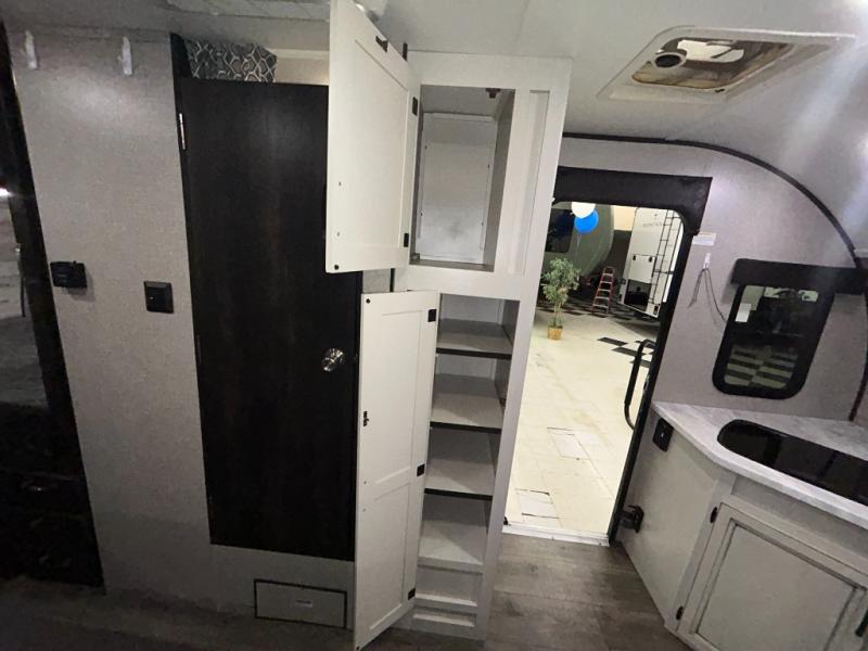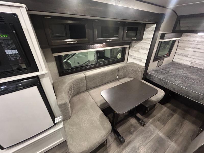 One look inside this travel trailer and you'll be hooked. After setting up camp and stretching your legs around the campgrounds, prepare a quick lunch in the convection microwave and you can enjoy it around the U-shaped dinette. This area will also be prefect for game night and additional sleeping space. The rear kitchen features extra counter space and you'll appreciate the pantry for dry good and snacks. Clean up in the wet bath after a day outside and the front queen bed with a privacy curtain will provide a great night's rest.