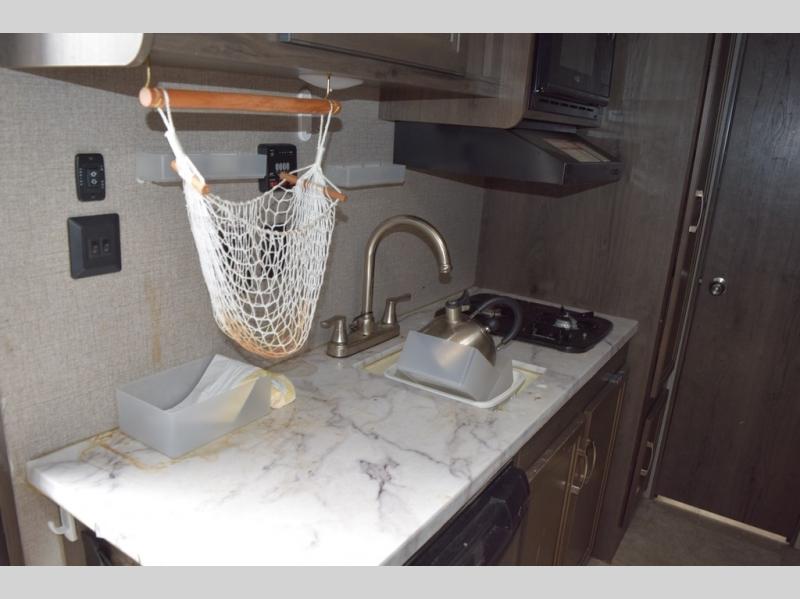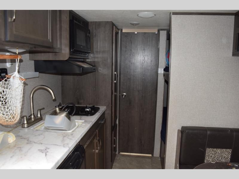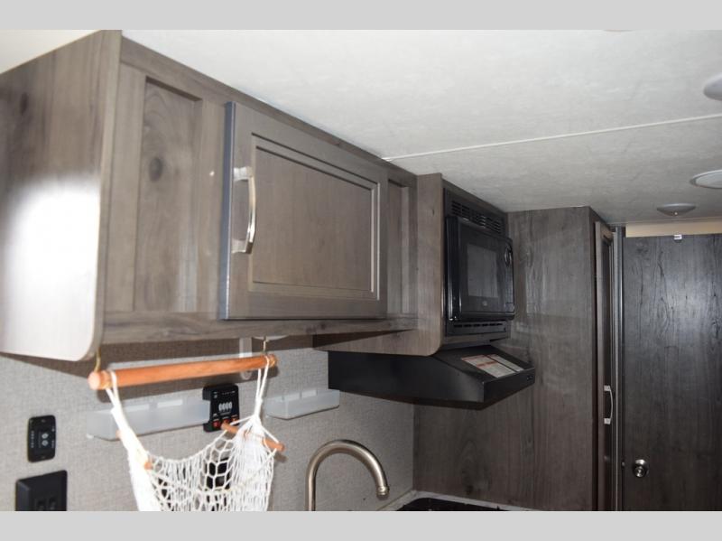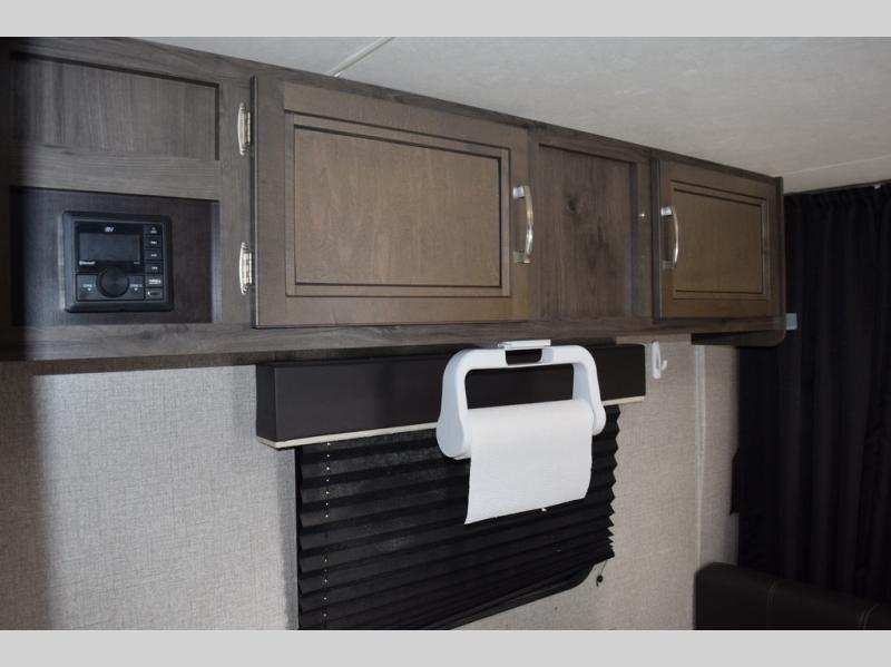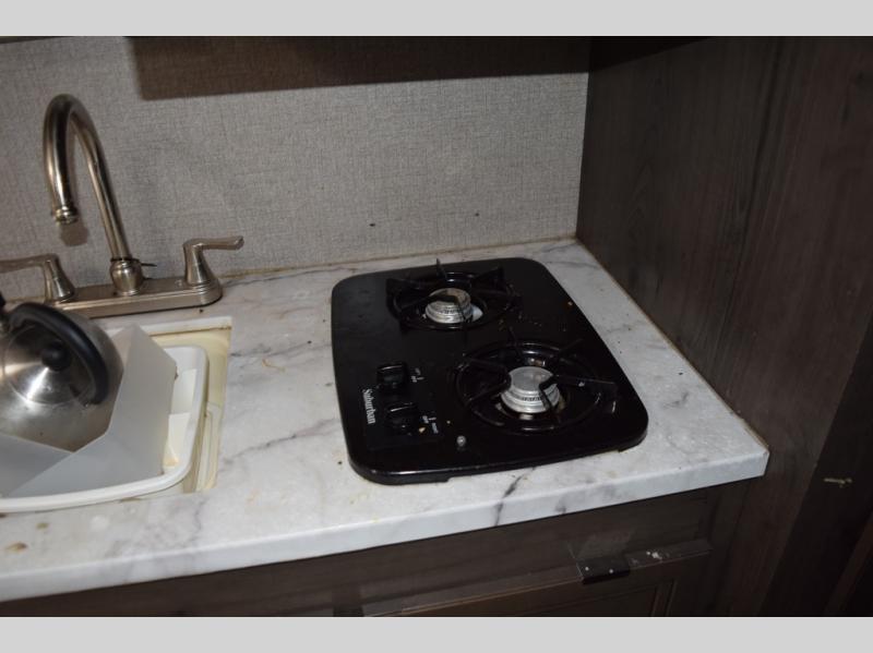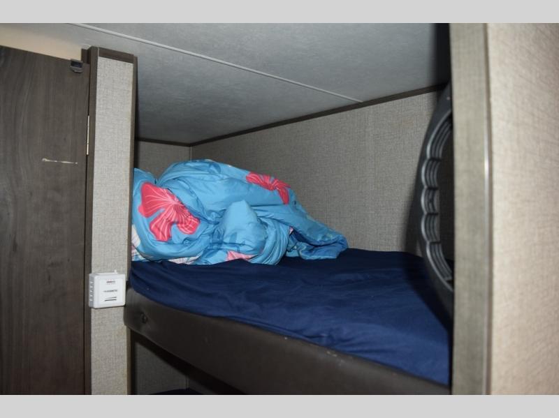 A great choice for your family of five is this Jay Flight SLX 7 travel trailer! The bunk beds and queen-size bed provide a comfortable spot for you to sleep at night, and a fifth camper can be comfortable on the booth dinette once it has been folded down into a bed. Grabbing a bite to eat is simple with the two-burner range and microwave oven. Pop a bag of popcorn in the microwave for a late-night snack and enjoy a card game or two inside at the table. The 10' electric awning with LED lighting will provide a great outdoor space both day and night.