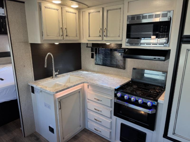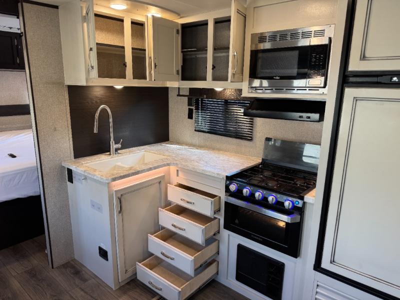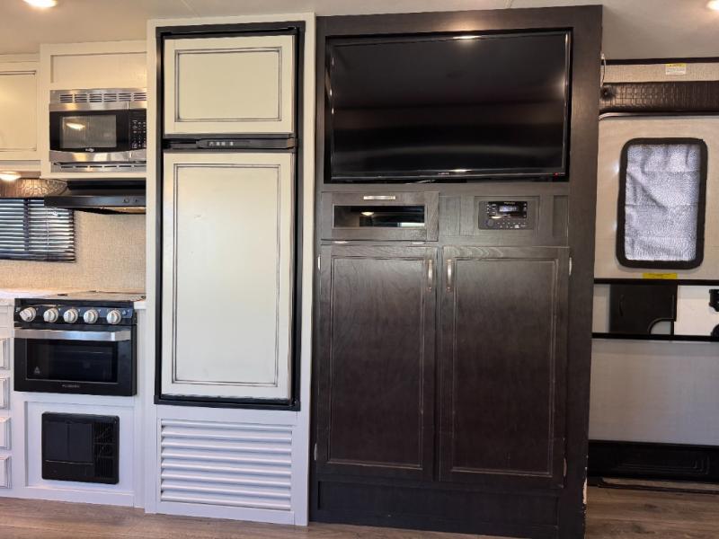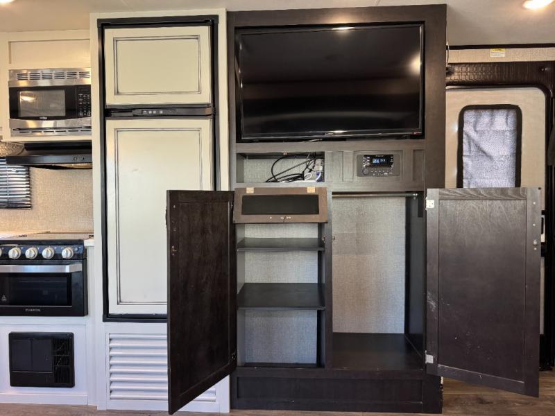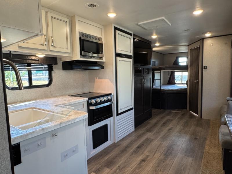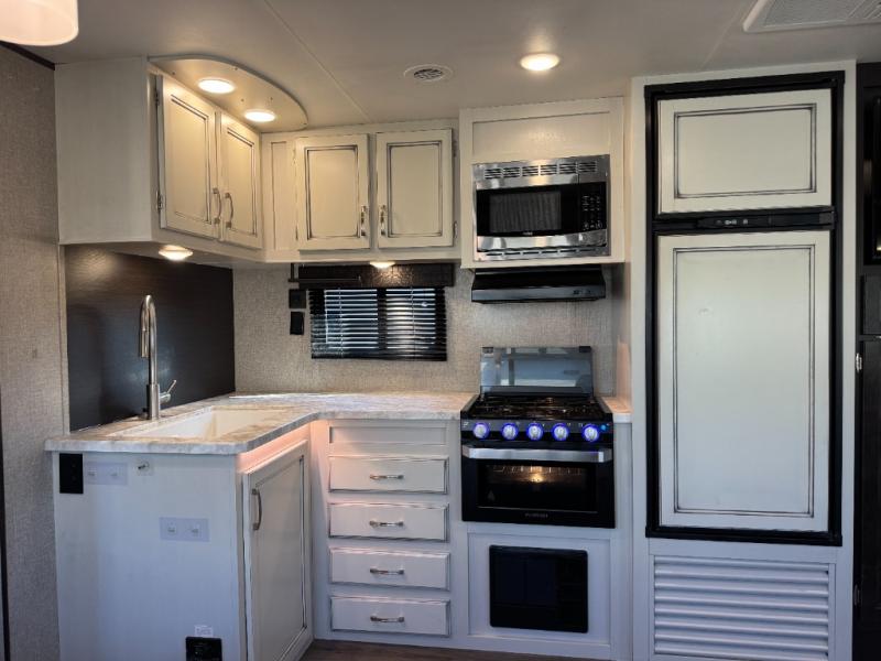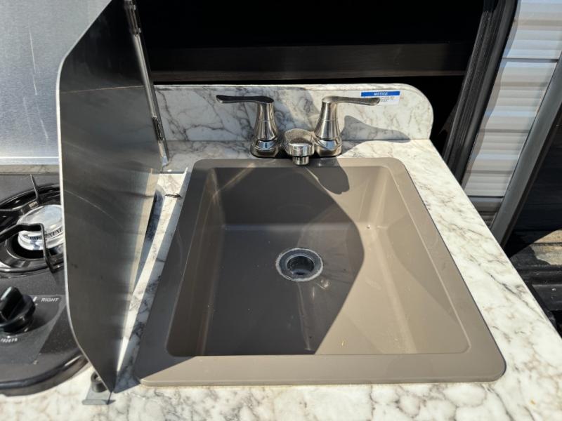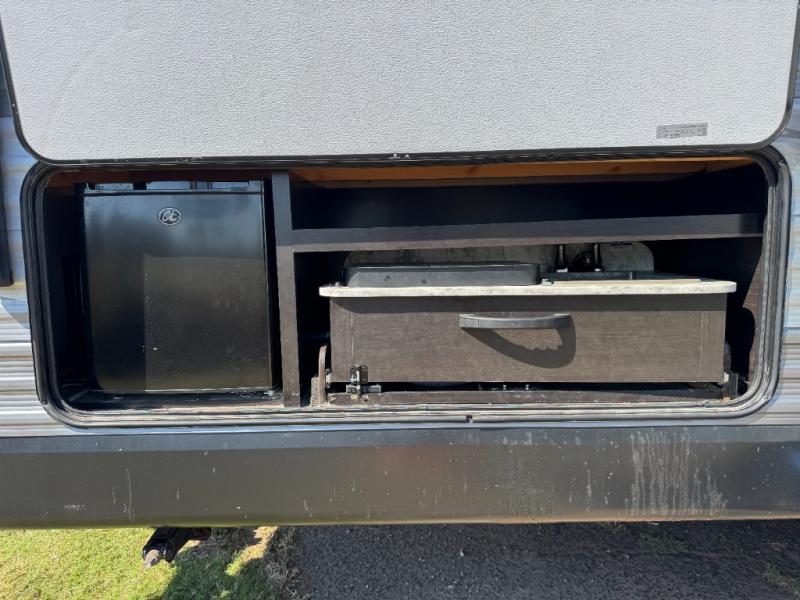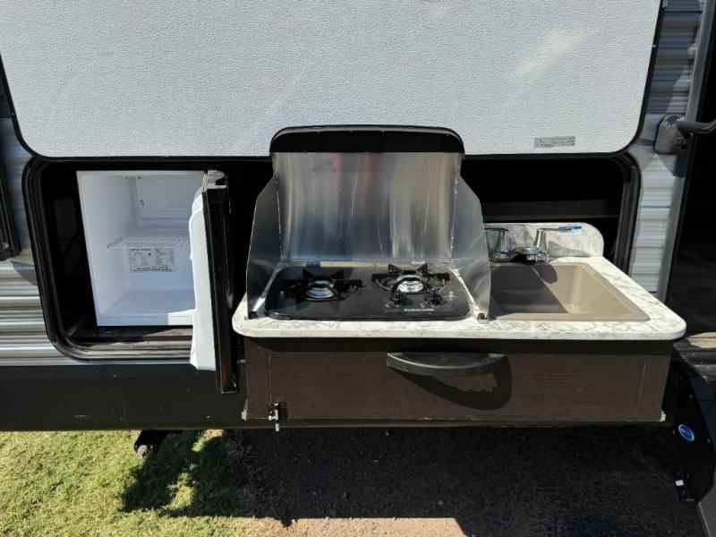 You will be able to load up quickly and easily with the two entry doors that have been included in this Jay Flight travel trailer! A large slide gives you added space on the interior so that you can actually enjoy your time spent inside. Since there is a pass-through storage compartment on the exterior of this trailer, you can store any cumbersome equipment in there, and the outdoor kitchen is such a fun tool to use for a sunrise breakfast.