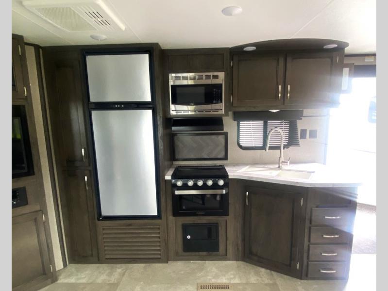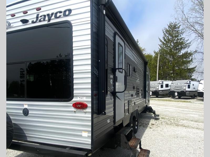 As the best-selling travel trailer in America, the Jayco Jay Flight travel trailer features all that you need for reliable, comfortable, and accommodating adventures! The American-made Goodyear tires, Dexter axles with Nev-R-Adjust brakes, and E-Z Lube hubs are what make it a dream to tow the Jay Flight, and the fully integrated A-frame and Magnum Truss roof system create a foundation that will last for years to come. Make your time spent at the campground an enjoyable one by using the power awning with LED lights and speakers as you sit around in some lawn chairs and share ghost stories by the campfire. Plus, if your hands get sticky from the roasted marshmallows, you can use the outside shower to rinse them off.
