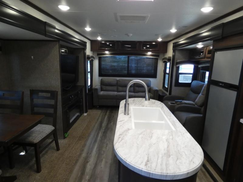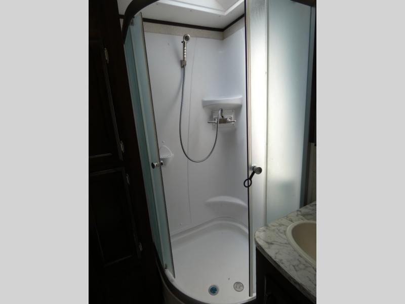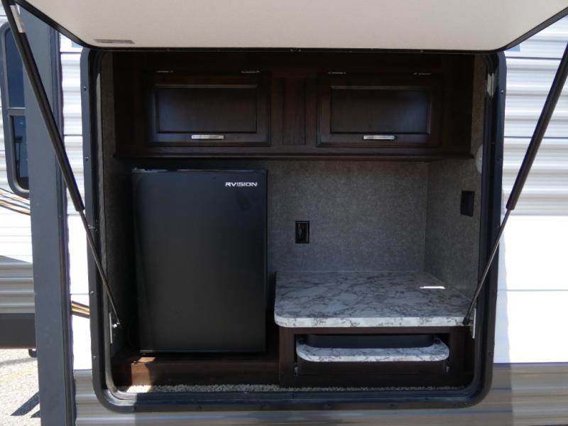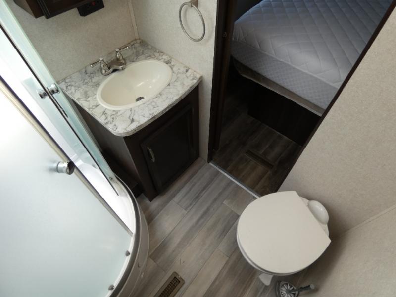 This fabulous Jay Flight travel trailer comes with large opposing slides to create extra interior living space! Because of that added space, you'll find a kitchen island which will make it easy to prep dinner or wash dishes afterwards. Another fabulous addition is the master suite up front that has its own private entrance into the bathroom, and since there is a skylight above the radius shower, you'll have more head space while you get clean.