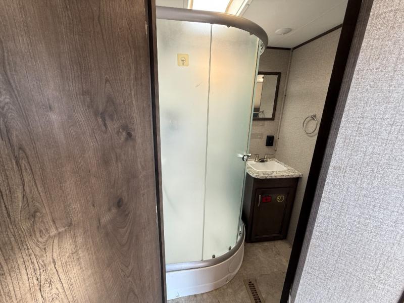 Each Jay Flight SLX 8 travel trailer by Jayco includes the Magnum Truss Roof system which provides seamless DiFlex II material on the roof and plywood decking, and a fully integrated A-frame and I-class cambered structural steel I-beams which is built to last! The roof-mounted air conditioner will come in handy during the hotter months, and the two propane bottles will help keep your showers hot and your meals warm! And when you need to rinse off yourself, your bikes, or the gear, the outdoor shower will do the trick. Choose the floorplan that fits your adventurous side, and load up the family for fun!
