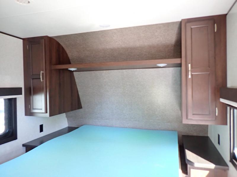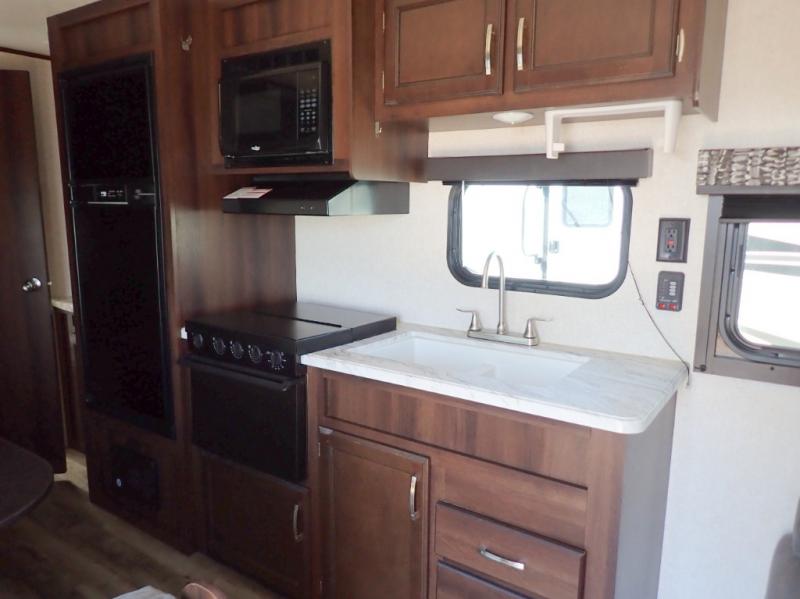 Each Jay Flight SLX 8 travel trailer by Jayco includes the Magnum Truss Roof system which provides seamless DiFlex II material on the roof and plywood decking, and a fully integrated A-frame and I-class cambered structural steel I-beams which is built to last! The roof-mounted air conditioner will come in handy during the hotter months, and the two propane bottles will help keep your showers hot and your meals warm! And when you need to rinse off yourself, your bikes, or the gear, the outdoor shower will do the trick. Choose the floorplan that fits your adventurous side, and load up the family for fun!