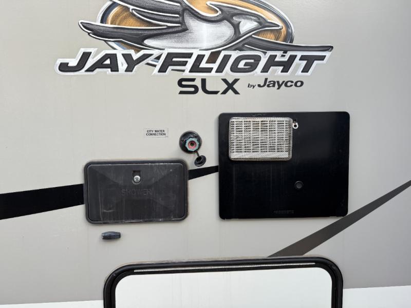 Each Jay Flight SLX 8 travel trailer by Jayco includes the Magnum Truss Roof system which provides seamless DiFlex II material on the roof and plywood decking, and a fully integrated A-frame and I-class cambered structural steel I-beams which is built to last! The roof-mounted air conditioner will come in handy during the hotter months, and the two propane bottles will help keep your showers hot and your meals warm! And when you need to rinse off yourself, your bikes, or the gear, the outdoor shower will do the trick. Choose the floorplan that fits your adventurous side, and load up the family for fun!