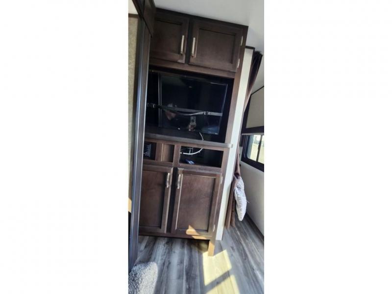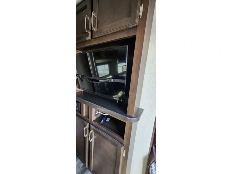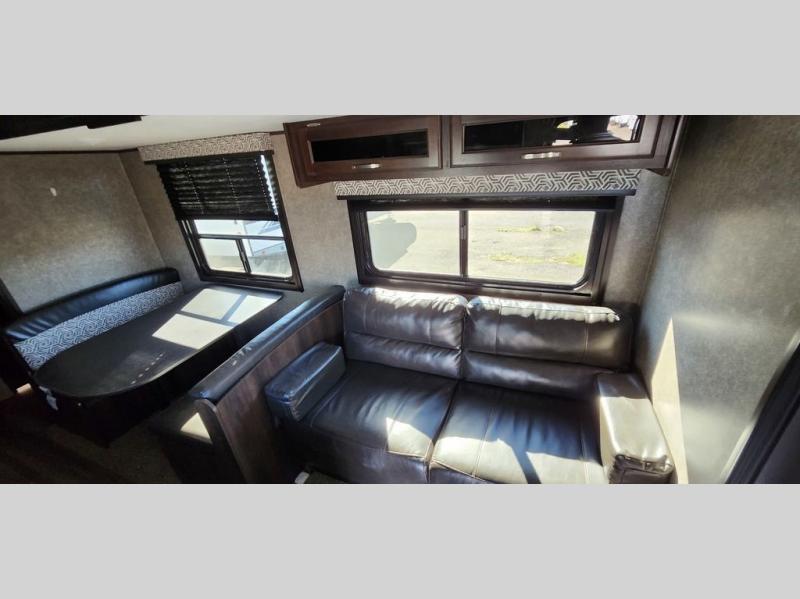 The full bathroom is next to the double size bunks making those nighttime trips for the little ones quiet convenient. And the full kitchen offers everything you will need to feed the whole family and their friends, plus solid surface countertops that are seamless. You can even make meals on the outside kitchen while the others relax under the power awning. The booth dinette and jackknife sofa slide out opens up the main area so everyone can have their own space to relax. And when you want to get away from it all, close the two bedroom doors to enjoy the queen Serta mattress and all the storage you will have in your own room.