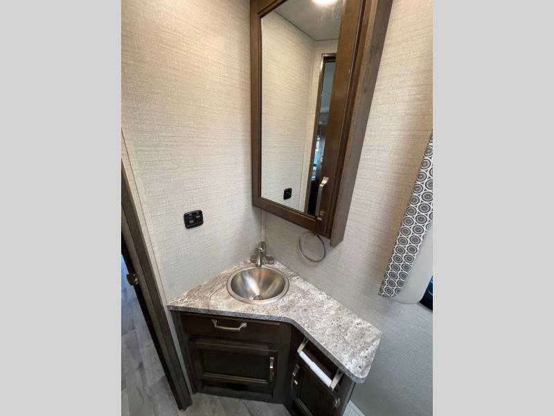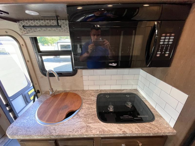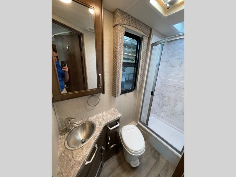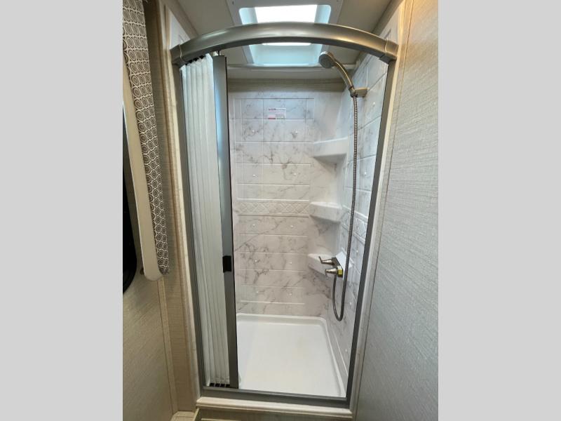 Enjoy driving in the city and on the open road! This nimble coach allows for just that, plus you will love all the accommodations allowing you to have a memorable and comfortable experience. From the U-shaped dinette offering a place to eat meals at, the rear corner bathroom with a skylight above the shower, and the queen bed to get a good night's sleep for the next adventure, to the cab-over bunk for the grandkids to sleep on, traveling is made easy!