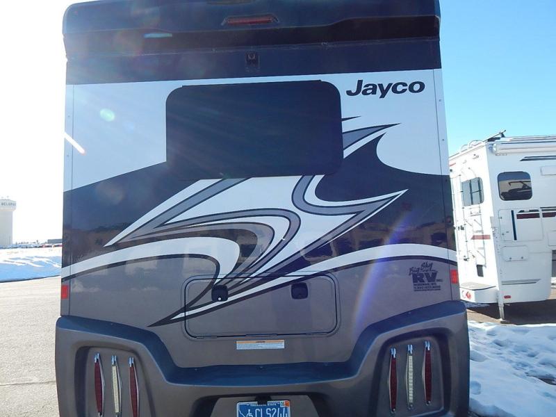 The Jayco Melbourne Prestige Class C diesel motorhome offers luxury for the adventure enthusiasts. With its modern style and the automotive-bonded panoramic window in the front cap and the updated graphic design package, this motorhome is going to impress everyone. Each model includes a Soundstream Infotainment dash radio with GPS and a CD/DVD player, a backup camera with monitor, a 12V USB charging station, and European-style curved cabinetry for an elegant at-home look.