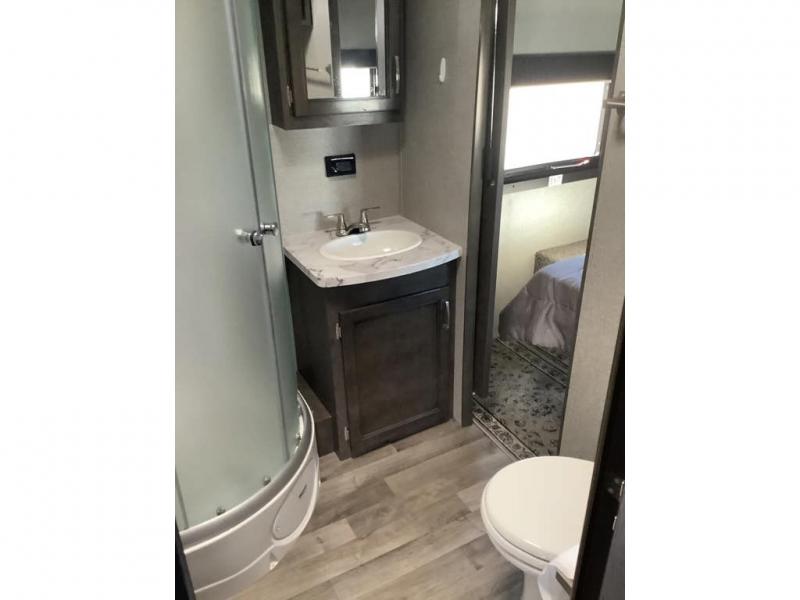 Check out Jayco's Octane Super Lite toy hauler and be impressed by the vast amount of convenient features it includes! The Octane's tires are Goodyear Endurance tires that have been made in the USA, so you know they are reliable and built to last. The enclosed battery storage box with locking door will do a wonderful job of keeping your RV's battery protected from the elements, and the Keyed Alike lockable baggage doors will keep all of your belongings safe with the convenience of one key for all doors. Each Octane will deliver a piece of home with its comfortable furnishings located throughout the interior, like the solid hardwood cabinetry, vinyl flooring, and stainless steel appliances.