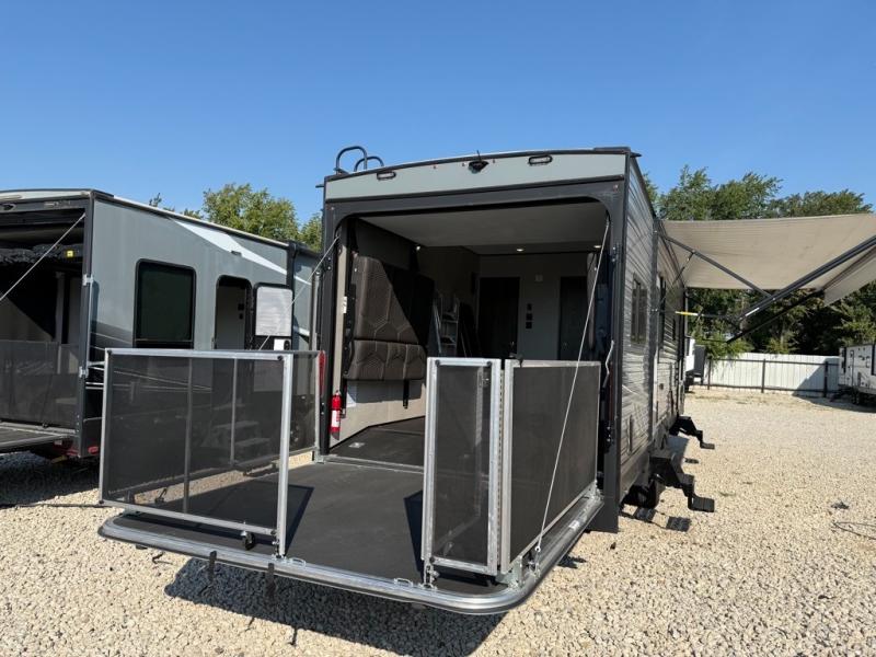 2020 JAYCO OCTANE SUPER LITE 293 TOY HAULER SERIES, WITH A PARTY DECK, Length 38FT. 2 REAR POWER BEDS, UNDERNEATH AND OVERHEAD STORAGE COMPARTMENTS. SUPER NICE KITCHEN, MULTIPLE STORAGE CABINETS. ENTERTAINMENT AREA WITH MULTIMEDIA SOUND SYSTEM. INDOOR AND OUTDOOR SPEAKERS. REMOVABLE REAR DINING TABLE. SOFA SLEEPERS. HEATED/ MASSAGE SOFA. OUTDOOR SHOWER. 30 GALLON FUEL STORAGE WITH PUMP, SUPER NICE UNIT. Lots Of Storage spots. Awning With LED Lighting. Sleeps 8, COLD A/C. Super Clean.. SUPER NICE TRAILER ONLY 8477Lbs UVW. CAN BE PULLED WITH A SMALL SUV. 50AMP POWER. OUR PRICE $29,995. SEVERAL SUPER NICE RVS TO CHOOSE FROM. We are located in KENNEDALE TX. We show Rv's 7 Days A WEEK BY APPOINTMENT. Call BRET 817*805*0067 or AMY 817*658*4633 FREE DELIVERY AVAILABLE TO ALL 48 STATES. WE INSPECT & GO THROUGH ALL TRAILERS TO ENSURE OUR CUSTOMERS ARE 100% SATISFIED. SE HABLA ESPANOL!