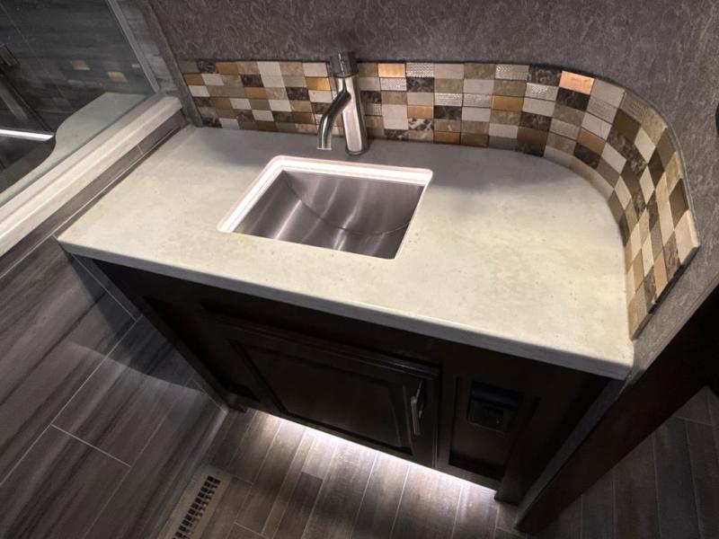 The Jayco Pinnacle is more than just another fifth wheel: it's the peak of luxury and the epitome of comfort no matter the destination! Each Pinnacle includes the Jayco-exclusive 5-Star Handling Package which comes with Dexter axles, a MORryde pin box for a smoother tow and maximum safety on the road, a MORryde rubberized suspension system allowing you to better absorb and isolate road shock, and Goodyear Endurance tires. You will also enjoy the interior of the Pinnacle for its opulent and luxurious details, like a 21 cubic foot residential refrigerator, a gas-strutted under-bed storage, crown molding with LED lighting, and exterior marine-grade speakers.