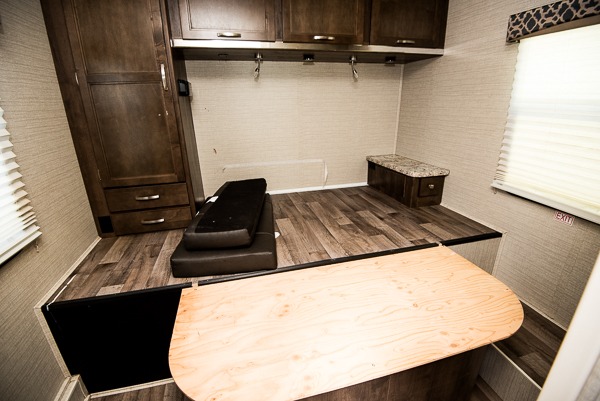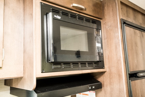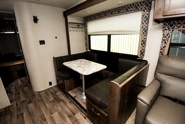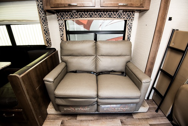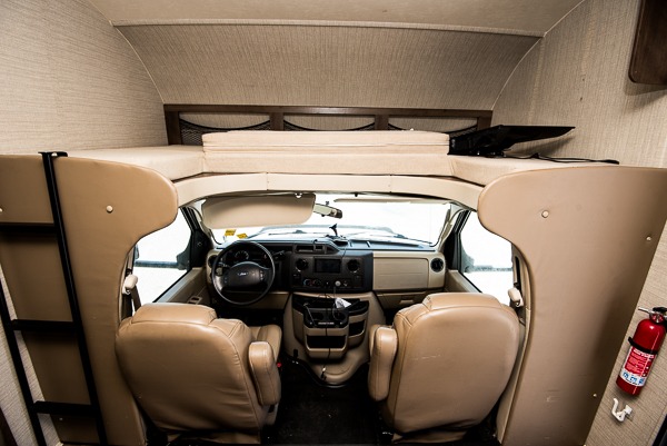 You can travel as far as you like, and sleep in comfort as well as dine and get cleaned up with your own accommodations. There is storage for a weekend or week-long trip, a TV over the cab, and a private rear bedroom when you close the divider. When it's time to retire for the evening, the walk-around queen bed provides you with a good night's rest no matter where you go, and the furniture plus the cab-over bunk offers extra sleeping space when needed. You also have a split bath allowing more than one person to be getting ready at once. You can either cook meals or heat up take-out in the kitchen, the choice is yours. You will even find a place for your golf clubs or camp chairs in the exterior pass-through storage compartment.