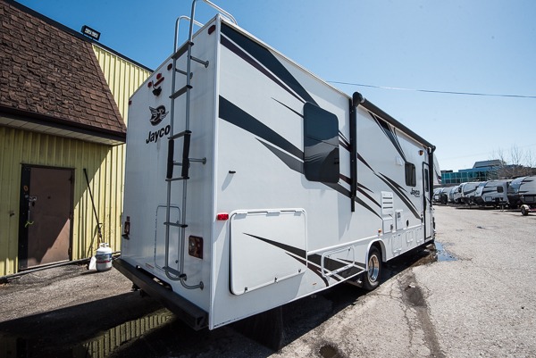 With any Jayco Redhawk Class C gas motorhome, you will get reliability and value from the Ford E-450 chassis, the Jayco exclusive JRide features offering the ultimate driving experience, the one-piece seamless fiberglass front cap, and the rear backup camera that feeds directly to your in-cab monitor to help you reverse with more visibility. Inside you can stand tall with a seven-foot ceiling height, cook your meals in the residential microwave or on the Furrion all-in-one cooktop with oven, plus dine at the Jayco-exclusive easy operation, legless dinette table. Come see why you should own a Redhawk today!