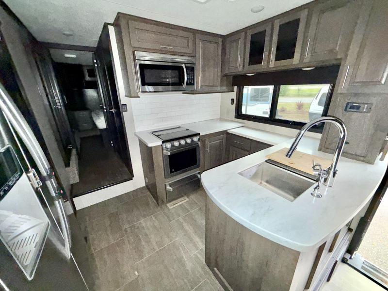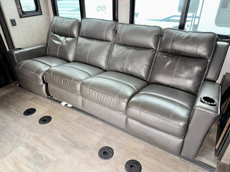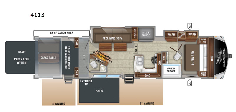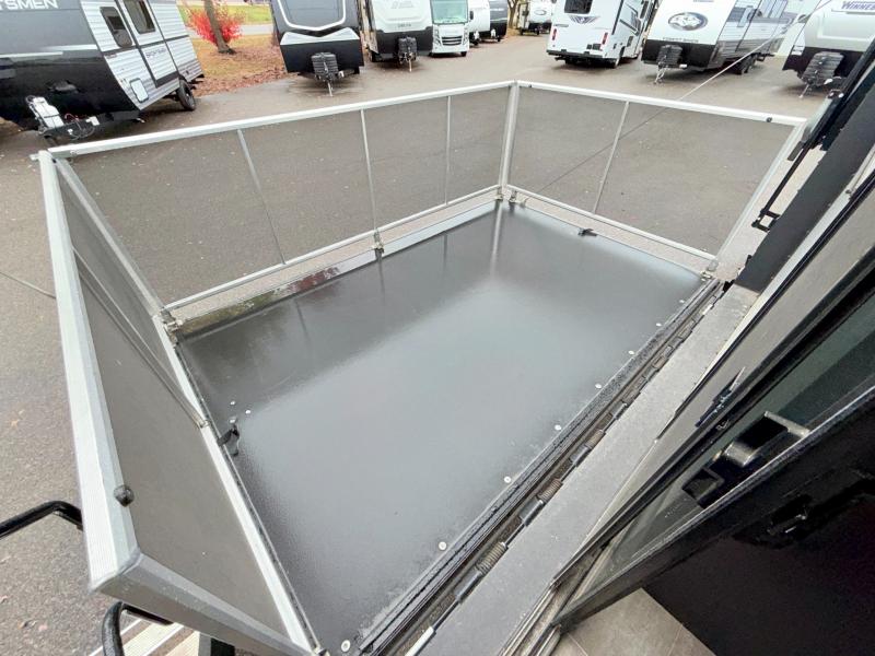 With any Jayco Seismic toy hauler fifth wheel you will appreciate the wide body structural steel I-beam construction, and the Magum Truss XL6 roof system, the strongest in the industry that will allow you to enjoy your RV for years to come. Each model features LED high-intensity ramp lights for easy loading and unloading, D-rings mounted to the steel frame to keep your toys secure, and a two inch block-foam insulated garage door to keep you comfortable in any weather. Inside, these models include a SuperSofa with heat, massage, and LED lighting, Shaw "Wood Plank" vinyl flooring, a central vacuum system, and the JAYCOMMAND Smart RV system that allows you to control many functions of your RV right from your smartphone or tablet.