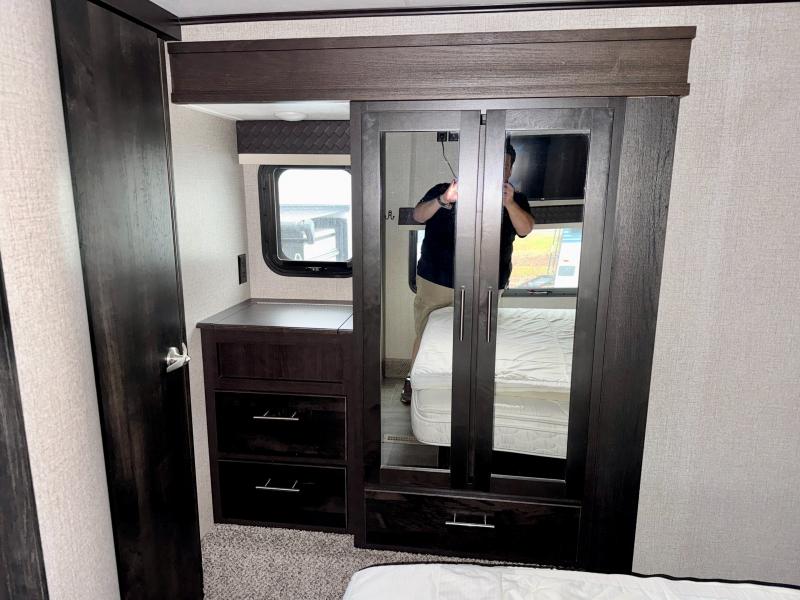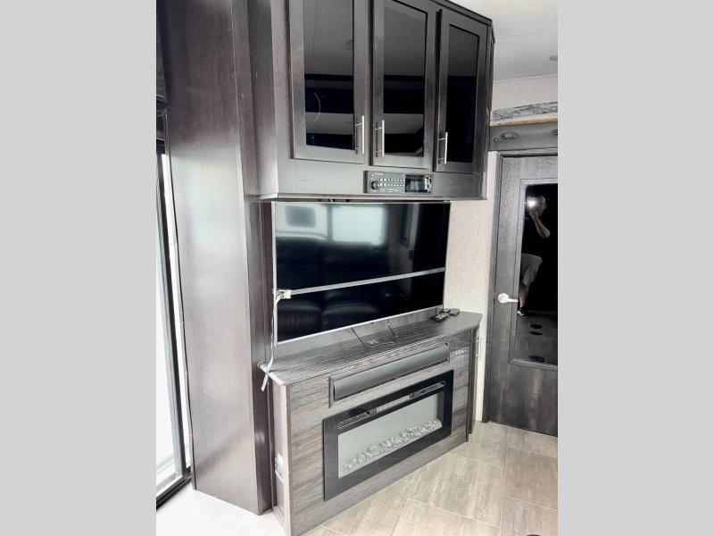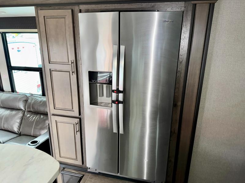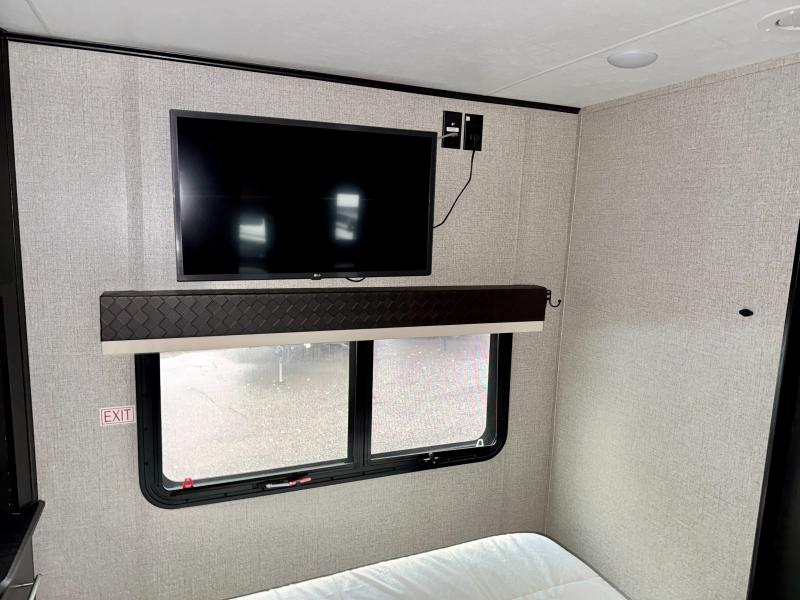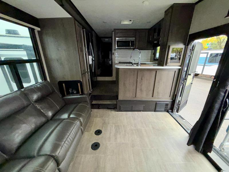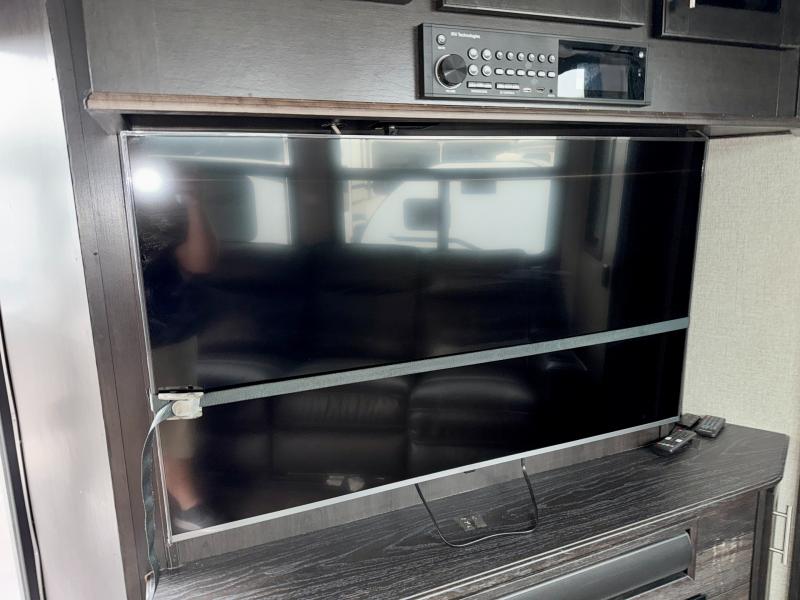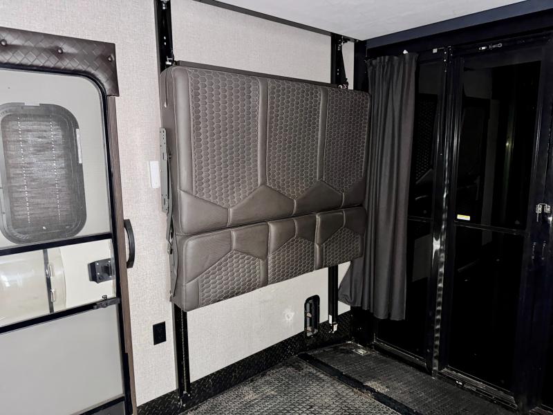 Are you looking to break away from the day-to-day and see new sights? This toy hauler will allow you to bring along your riding toys and invite the family along too! The side patio will be great for relaxing with a cold drink and the exterior TV allows you to watch the big game. There are also two power awnings with LED lights to create a comfortable outdoor living space. Enter from one of two entry doors; the separate garage or straight into the living area. Your crew can relax on the reclining sofa and watch a show on the 50" TV. The elevated kitchen features tons of counter space and the dual entry bath will create a front master suite that will make you feel right at home.