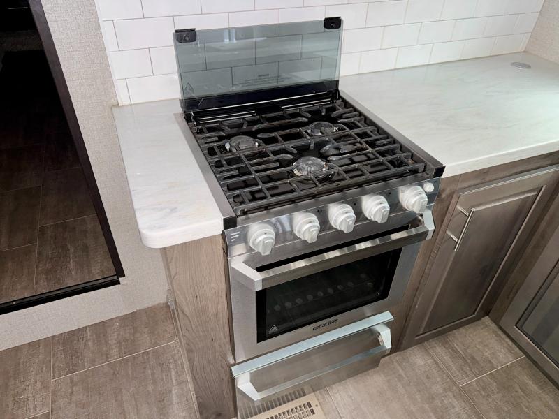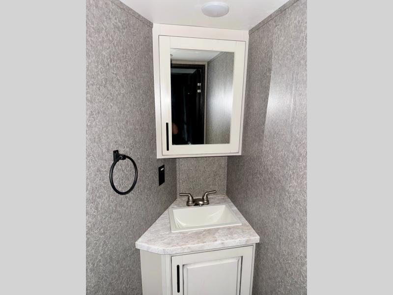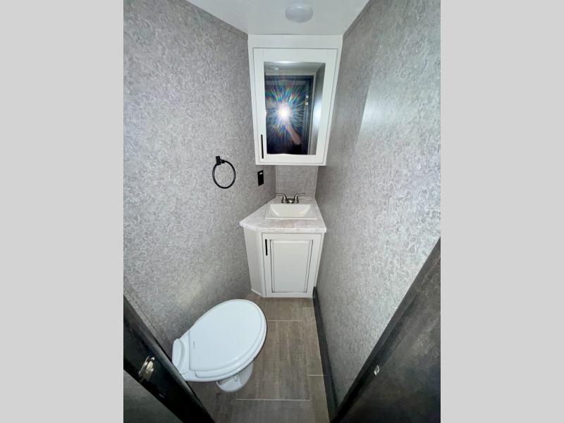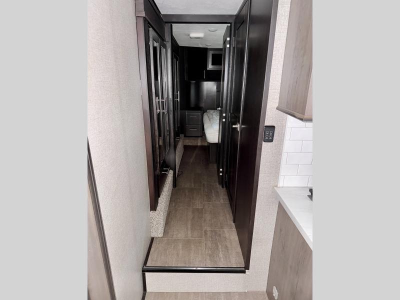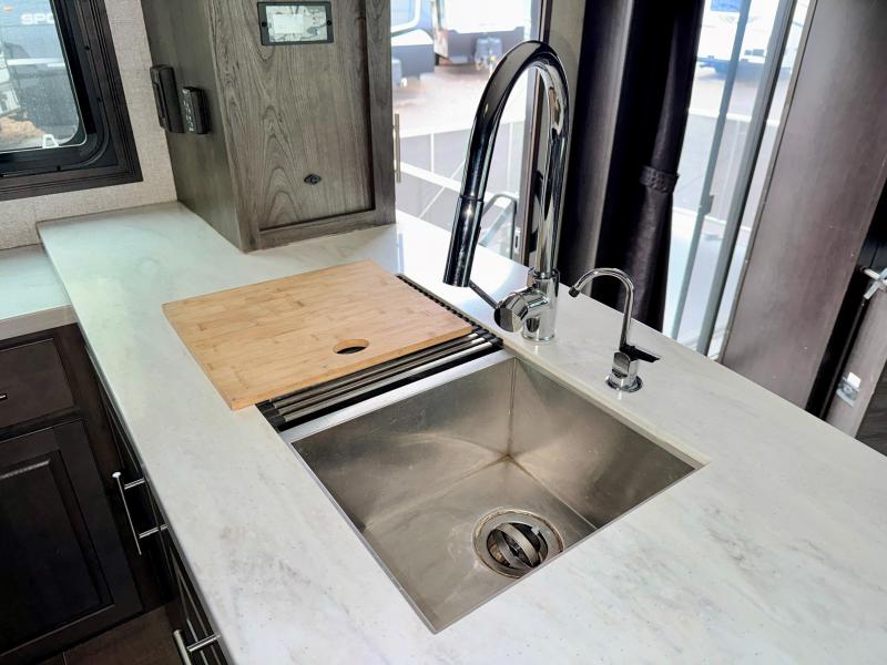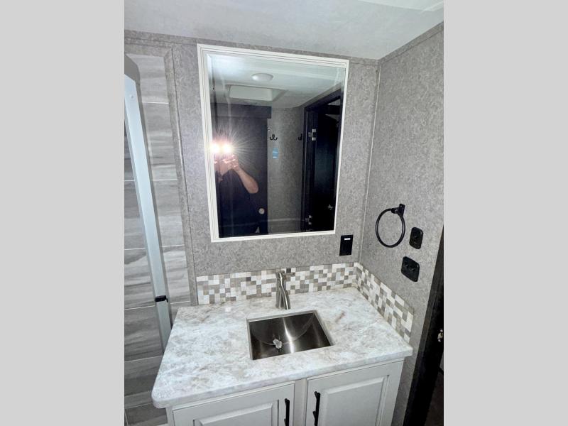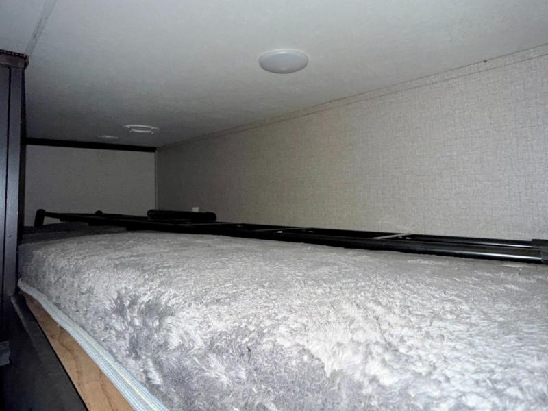 Are you looking to break away from the day-to-day and see new sights? This toy hauler will allow you to bring along your riding toys and invite the family along too! The side patio will be great for relaxing with a cold drink and the exterior TV allows you to watch the big game. There are also two power awnings with LED lights to create a comfortable outdoor living space. Enter from one of two entry doors; the separate garage or straight into the living area. Your crew can relax on the reclining sofa and watch a show on the 50" TV. The elevated kitchen features tons of counter space and the dual entry bath will create a front master suite that will make you feel right at home.