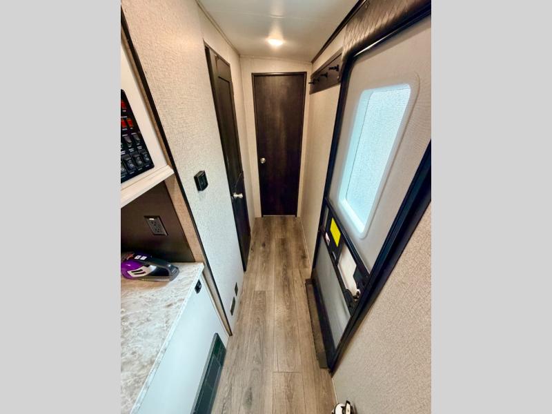 Jayco has made certain that you will stand out from the crowd while traveling in the White Hawk by adding their Magnum Truss Roof System which can withstand up to 4,500 pounds, fifty percent more than the competition. The American-made Goodyear tires with self-adjusting electric brakes are the perfect base to the sleek and aerodynamic exterior. On top of all of that, you will also find an enclosed underbelly with Climate Shield so that nothing will stop you from adventuring during all sorts of weather, and the JAYCOMMAND "Smart RV" system is a wonderful addition that allows you to control various functions of your trailer from the convenience of your smart phone.