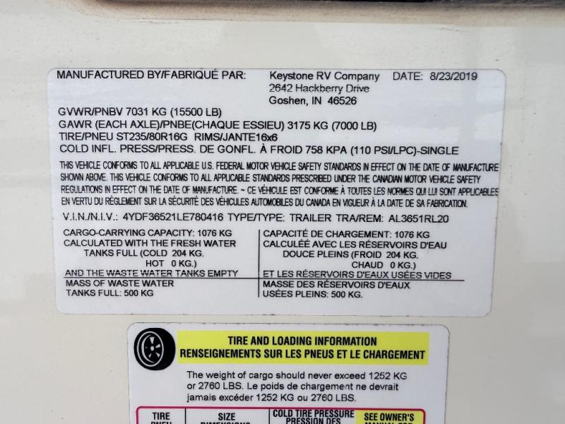 Used 2020 Keystone RV Alpine 3651RL Fifth Wheel