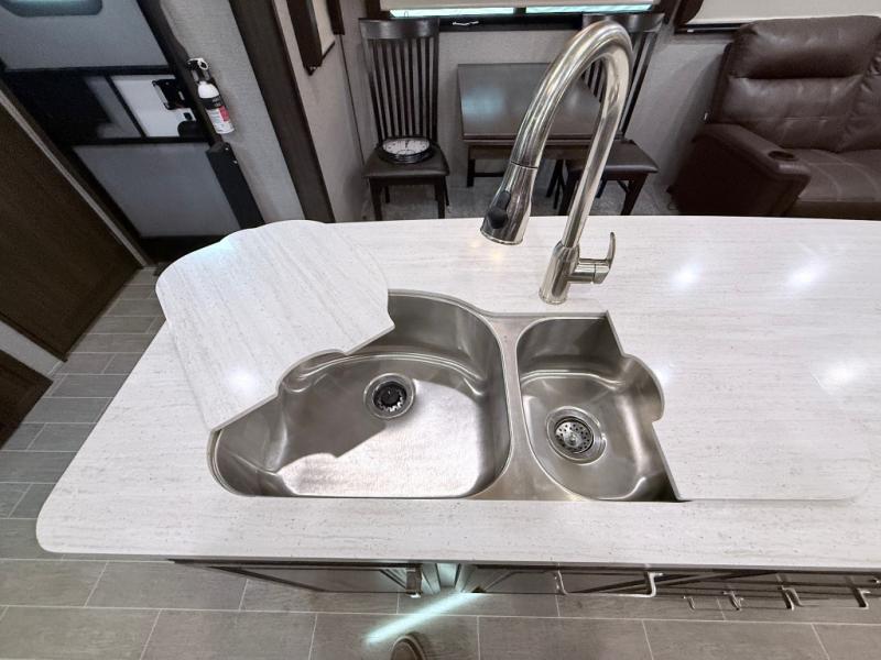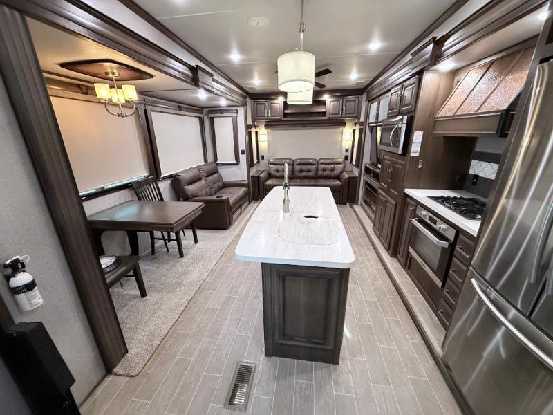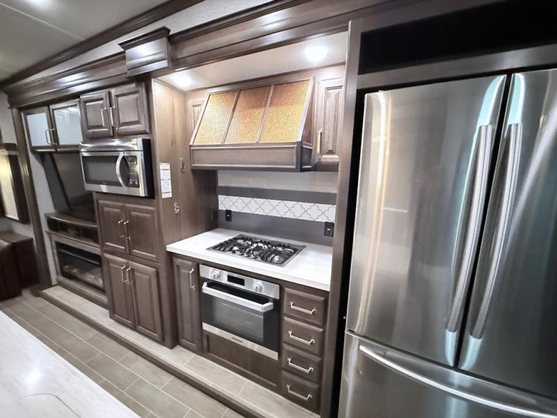 When you choose an Alpine fifth wheel by Keystone RV, you are choosing luxury. The Whisper Air System is the quietest cooling system ever developed, and it keeps your RV at the perfect interior temperature no matter what the outside weather may bring. Every aspect of the Alpine has been designed to enhance your full-time camping experience, like the Super Cinema package, and the all-in-one water works exterior utility center will help you keep your Alpine flowing at its best throughout each adventure. You will also love the Furrion RV Chef Collection that gives you the ability to cook with precision and consistency as you travel the country and helps you provide your guests with a higher level of cuisine during each camping trip.