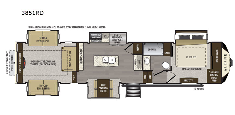 Keystone RV Alpine fifth wheel 3851RD highlights: