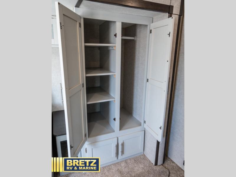 This single-slide Bullet travel trailer features a rear kitchen with all of the appliances needed to prepare meals and snacks for your family while you are away from home. You can sit and relax on the 68" sofa and the booth dinette whenever you need a break from adventuring. Both of these seating areas double as sleeping space each night giving this trailer the ability to sleep five people. The private bedroom contains two large wardrobes and one of the two entry doors which gives it direct access to the exterior.