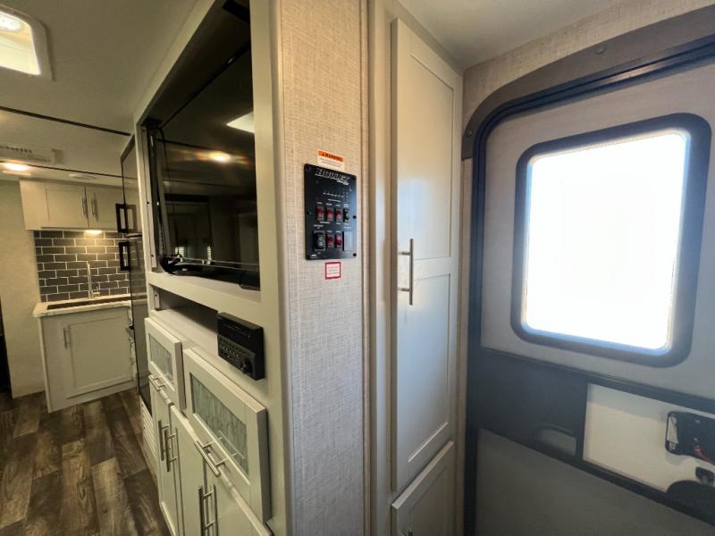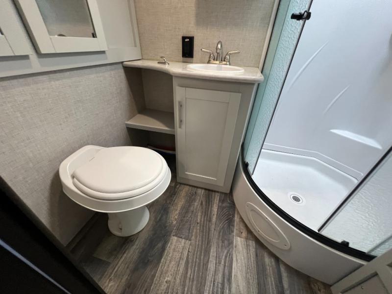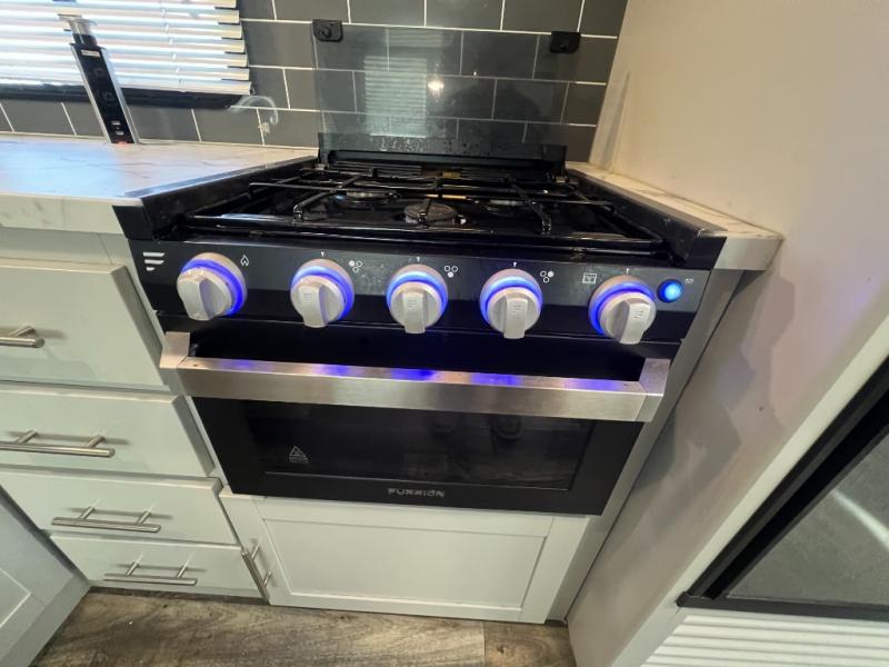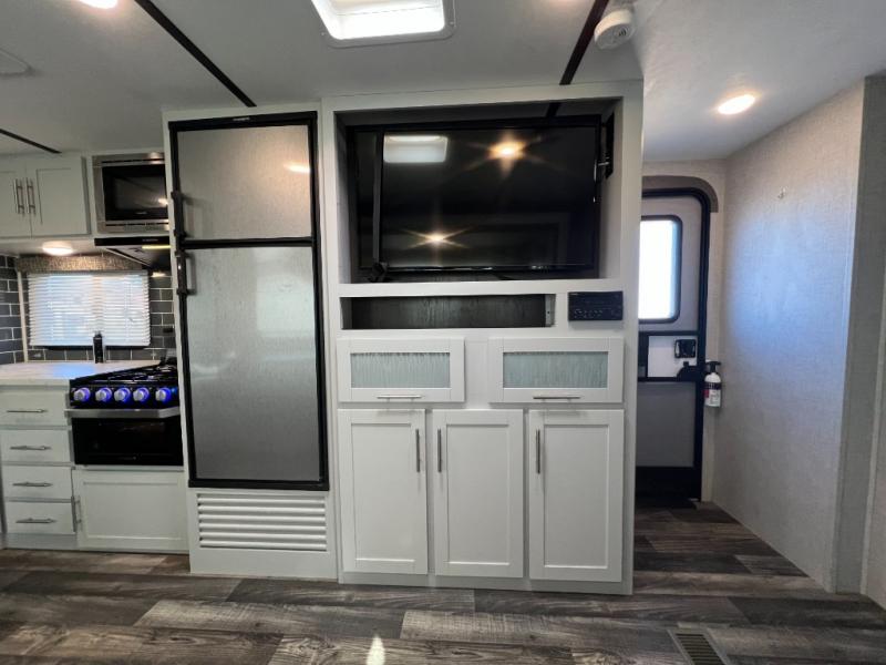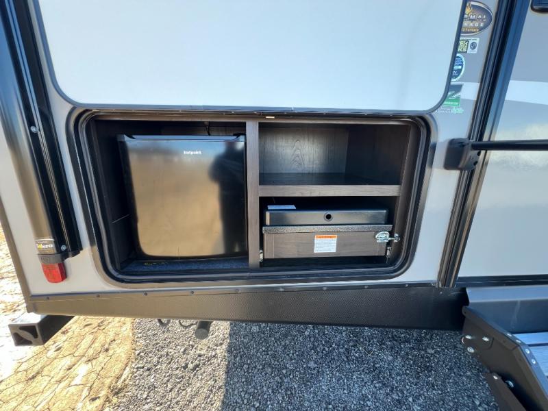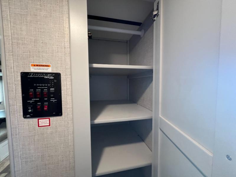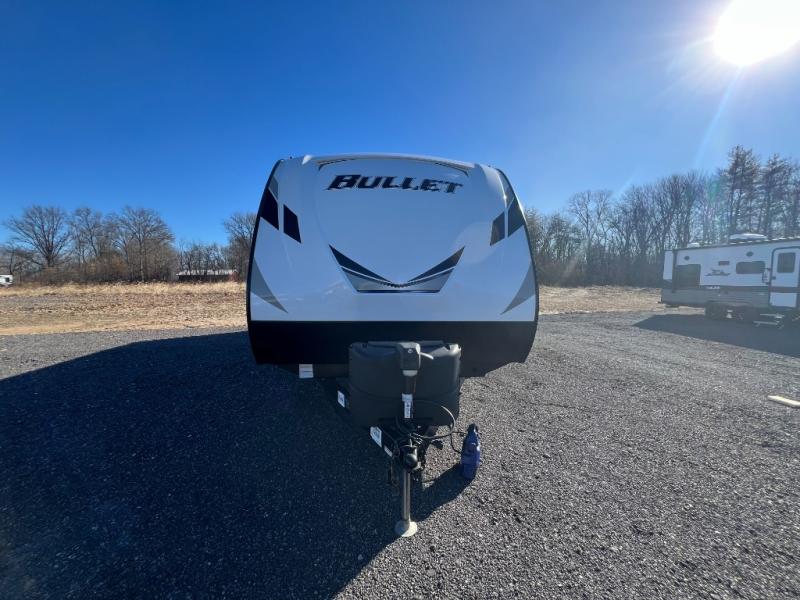Load up your family and head out to a quiet retreat at your favorite campground with this Bullet travel trailer by Keystone. Before you head inside, check out the outdoor kitchen which features a two-burner range top and a mini refrigerator where you can keep your drinks or snacks cool. In the evening, plan to sit out underneath the 20' electric awning with LED lights and enjoy the scenic sunset. Inside of this model you will love how open and spacious the kitchen and living area are with the single slide, and the full bathroom will provide everything you need to get ready for the day, including a radius shower and linen closet.