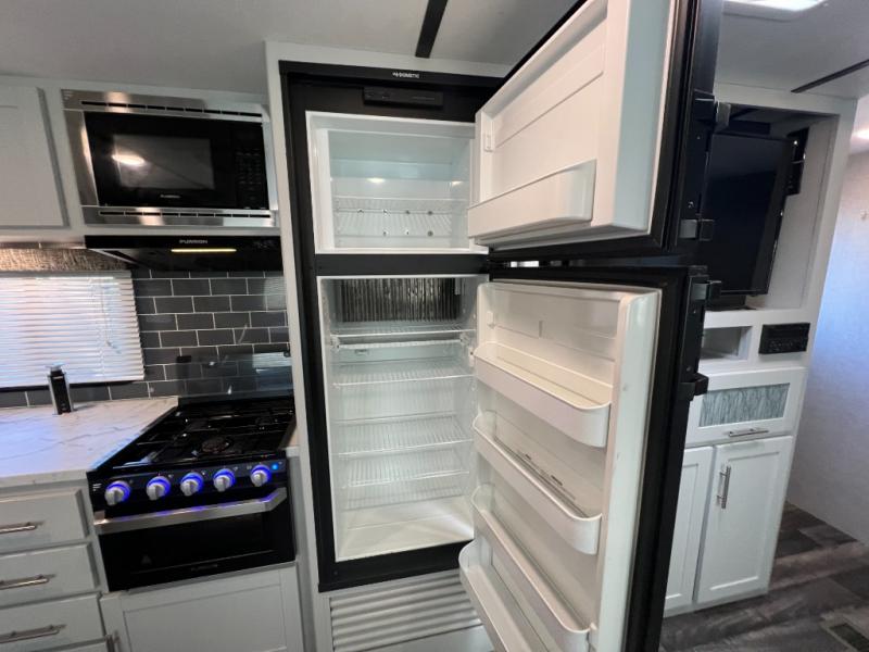 With any Bullet travel trailer by Keystone, you will appreciate the wide-stance Dexter E-Z Lube axles, the enclosed and heated underbelly, and the aggressive front profile for increased towability. Each model includes a 6 Cu. Ft. stainless steel double door refrigerator, ultra-durable Whitewater continuous-edge countertops, plus a stainless steel sink for easy clean-up. You'll enjoy hardwood entry doors into the bedroom, dual USB ports for tablet and phone, plus a laundry chute to make camping hassle-free. The Bullet features a variety of floorplans to fit your family's needs best. Choose your favorite layout today!