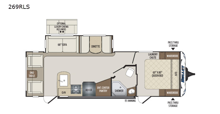 Keystone Bullet travel trailer 269RLS highlights: