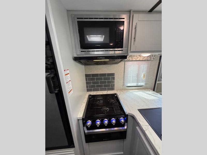 When the great outdoors is calling your name, answer the call with this single-slide Bullet travel trailer. The dual entry makes it easy for you to enter this trailer while you load up your luggage for a weekend getaway; the dual entry also gives the private bedroom direct access to and from the trailer. Enjoy your time relaxing in one of the two lounge chairs, the 68" sofa, or the booth dinette as you take in the pleasant aromas sizzling on the three-burner range top.