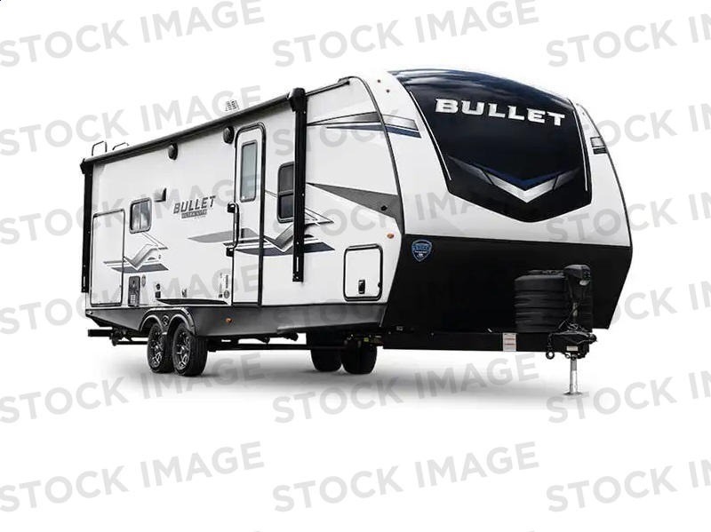 With any Bullet travel trailer by Keystone, you will appreciate the wide-stance Dexter E-Z Lube axles, the enclosed and heated underbelly, and the aggressive front profile for increased towability. Each model includes a 6 Cu. Ft. stainless steel double door refrigerator, ultra-durable Whitewater continuous-edge countertops, plus a stainless steel sink for easy clean-up. You'll enjoy hardwood entry doors into the bedroom, dual USB ports for tablet and phone, plus a laundry chute to make camping hassle-free. The Bullet features a variety of floorplans to fit your family's needs best. Choose your favorite layout today!