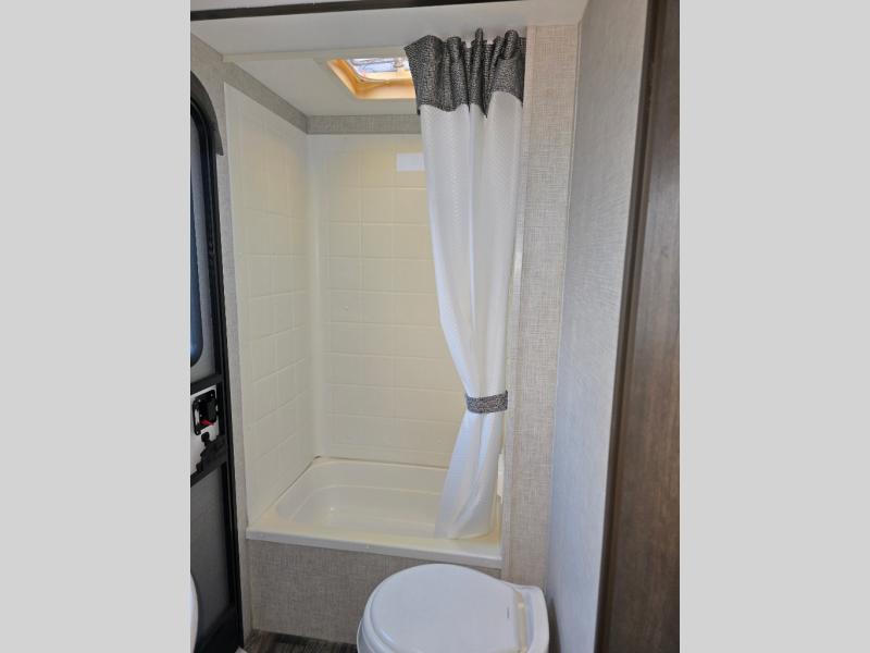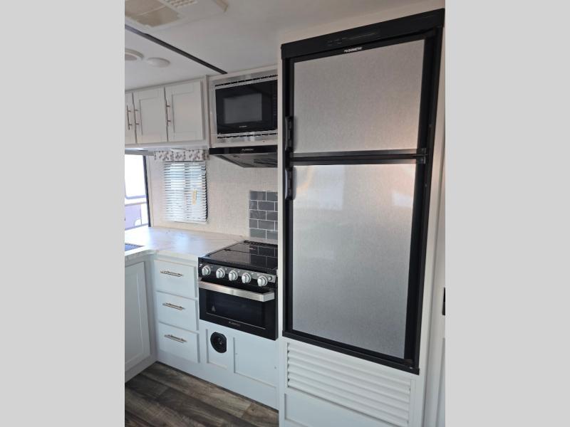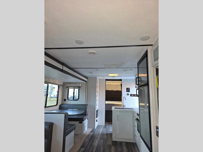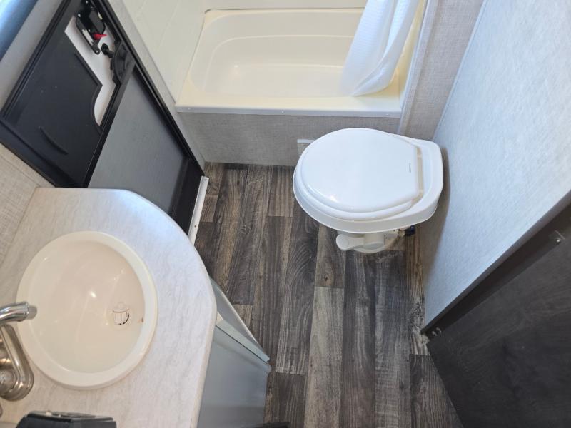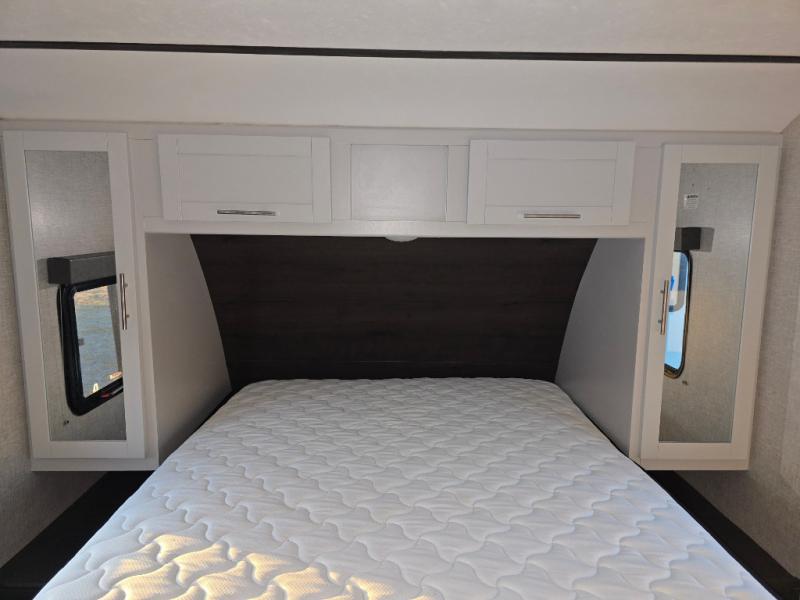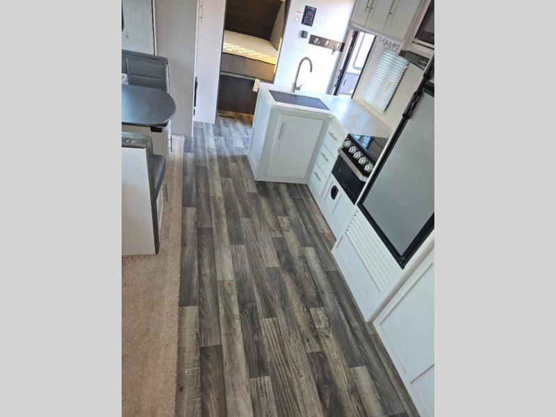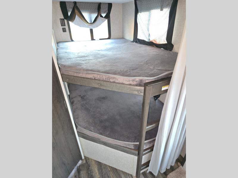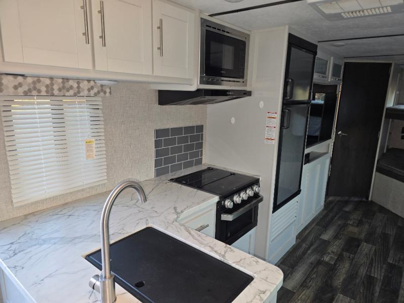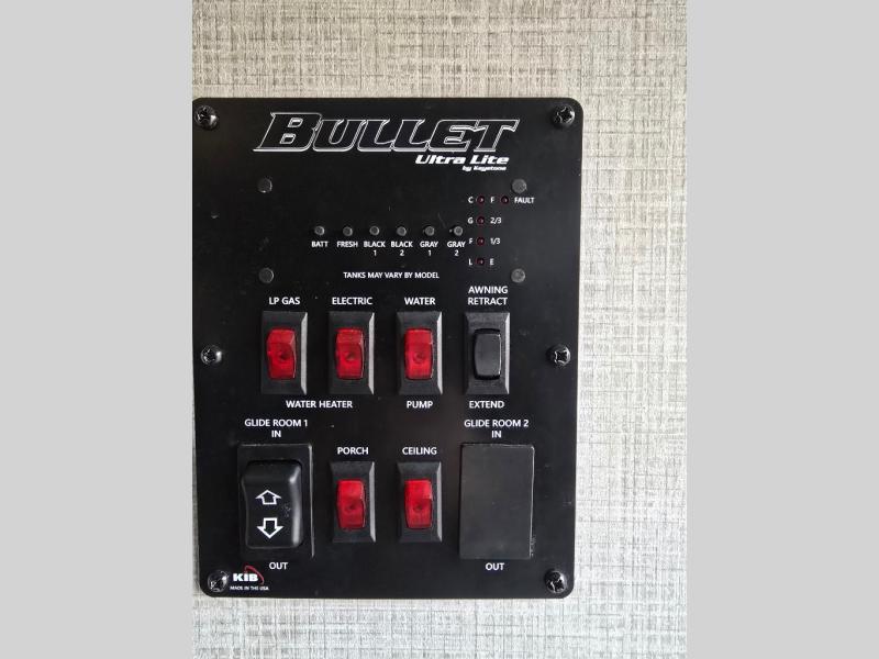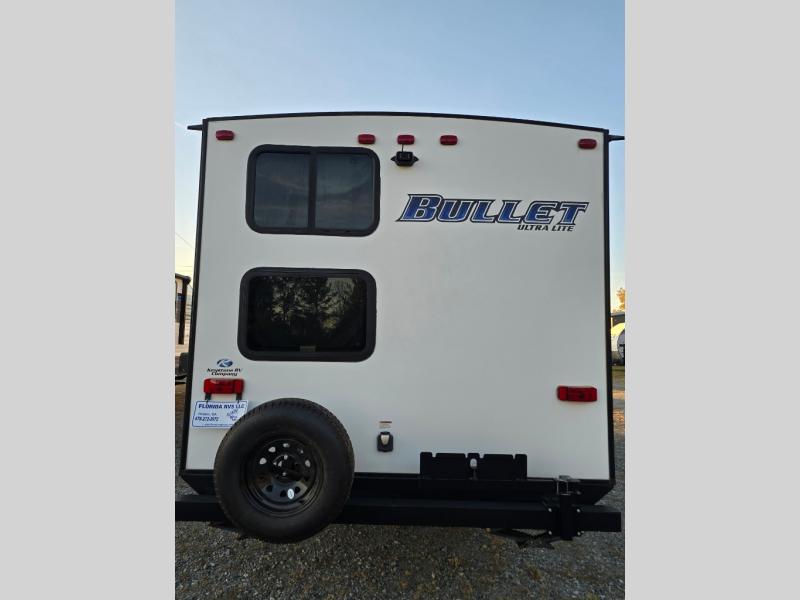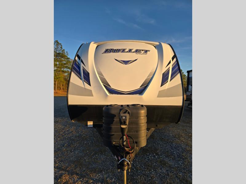 With any Bullet travel trailer by Keystone, you will appreciate the wide-stance Dexter E-Z Lube axles, the enclosed and heated underbelly, and the aggressive front profile for increased towability. Each model includes a 6 Cu. Ft. stainless steel double door refrigerator, ultra-durable Whitewater continuous-edge countertops, plus a stainless steel sink for easy clean-up. You'll enjoy hardwood entry doors into the bedroom, dual USB ports for tablet and phone, plus a laundry chute to make camping hassle-free. The Bullet features a variety of floorplans to fit your family's needs best. Choose your favorite layout today!