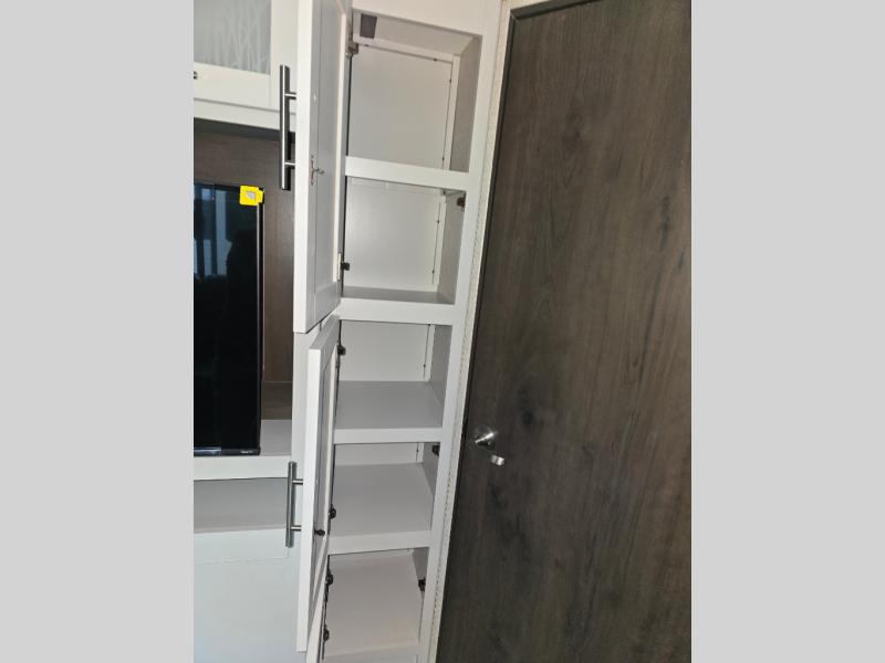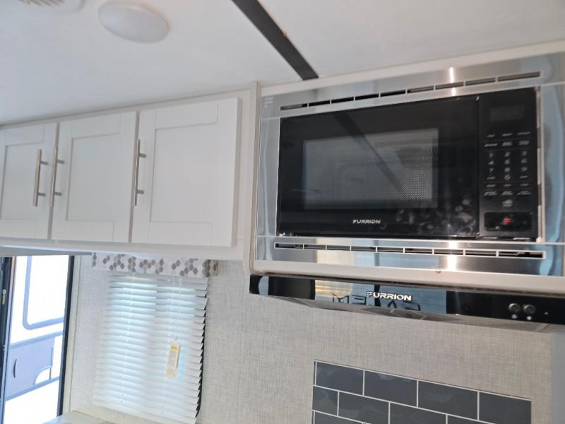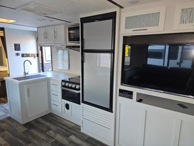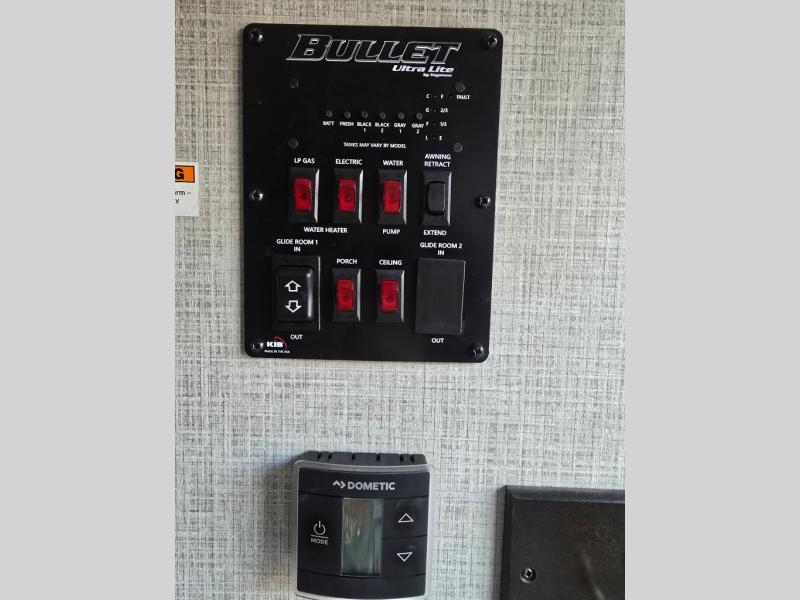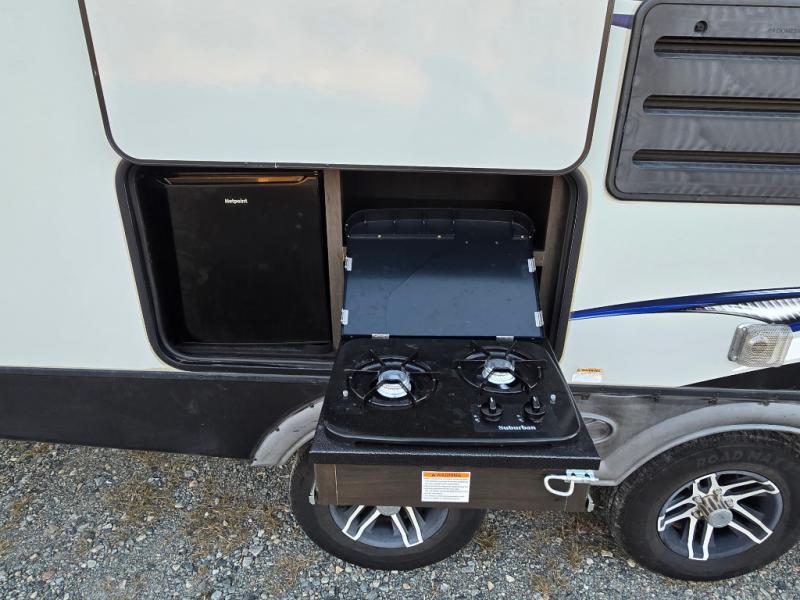 You will love how accommodating this Bullet travel trailer is! Because this unit can sleep nine people, it is a great option for those who travel with large families or like to host big weekend parties, and the front private bedroom will give you a place to escape if your guests get a little too wild. With the addition of the large slide, you will have plenty of room indoors to get together for a movie night with the 32" LED TV, and the outdoor kitchen will be perfect for hosting summer barbecues.