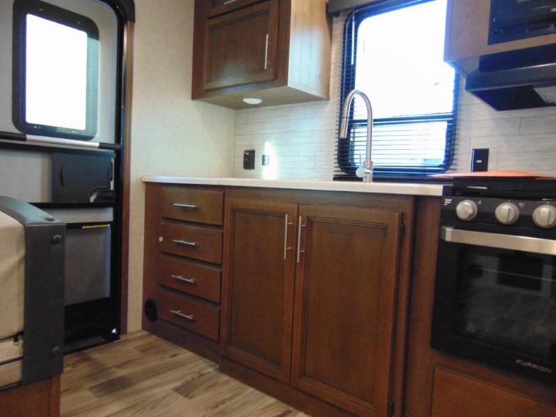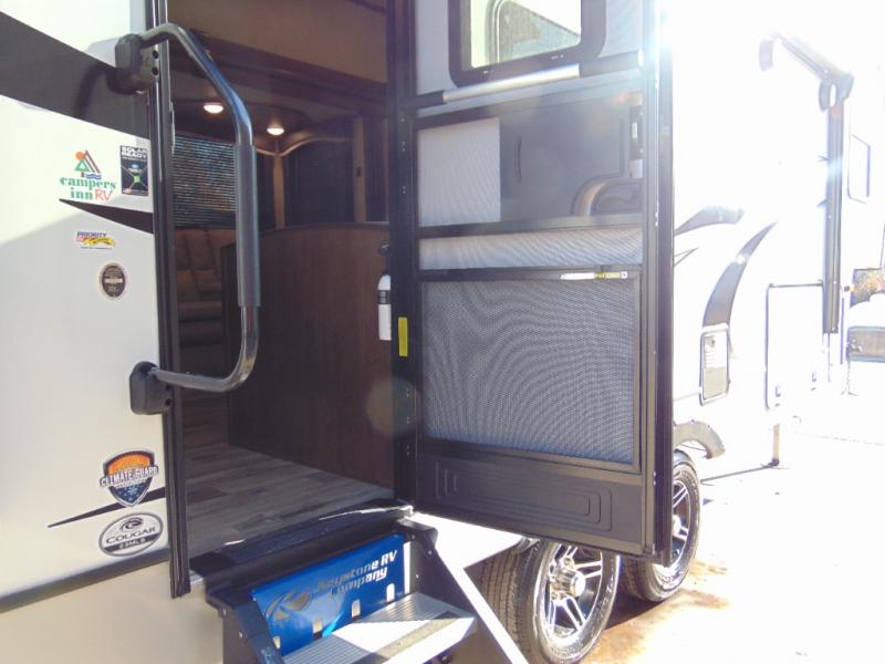Whatever you do, do it in style with this Cougar Half-Ton fifth wheel! A private bedroom up front will allow you to grab a new outfit from the wardrobe slide and change in privacy before heading out on an adventure. If you'd rather stay inside, you can sit back on the 68" tri-fold sleeper sofa and relax. You can also have a good lunch while you stay inside because the 21" Furrion range with Piezo ignition will make it easy to prepare any of your favorite meals.
