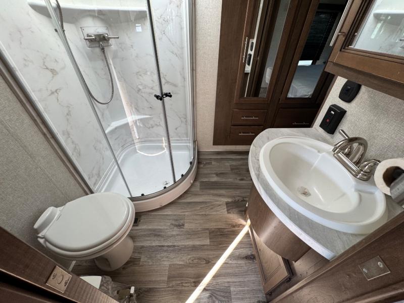 This Cougar fifth wheel comes with an unobstructed pass-through storage area on the exterior so that you can bring along plenty of gear to make all of your journeys fabulous! You'll also enjoy staying outdoors underneath the two 11' power awnings, and once you are ready to relax at the end of a long day, you can head inside and put your feet up on the tri-fold sleeper sofa and theater seating in front of the 50" LED HDTV. When it is time for bed, head to your own bedroom with a walk-around queen bed, three wardrobes, a quick second entry into the bathroom, and a patent-pending windshield offering more natural lighting inside.