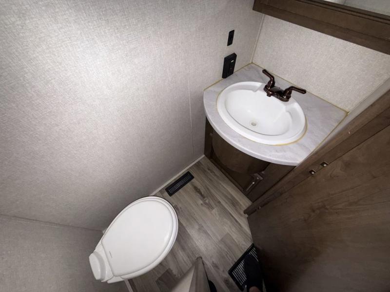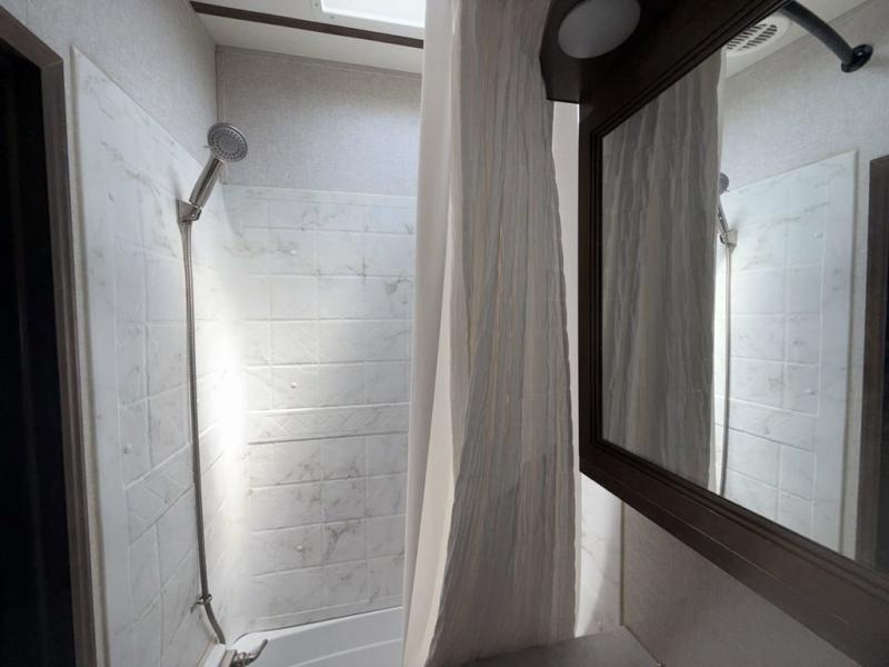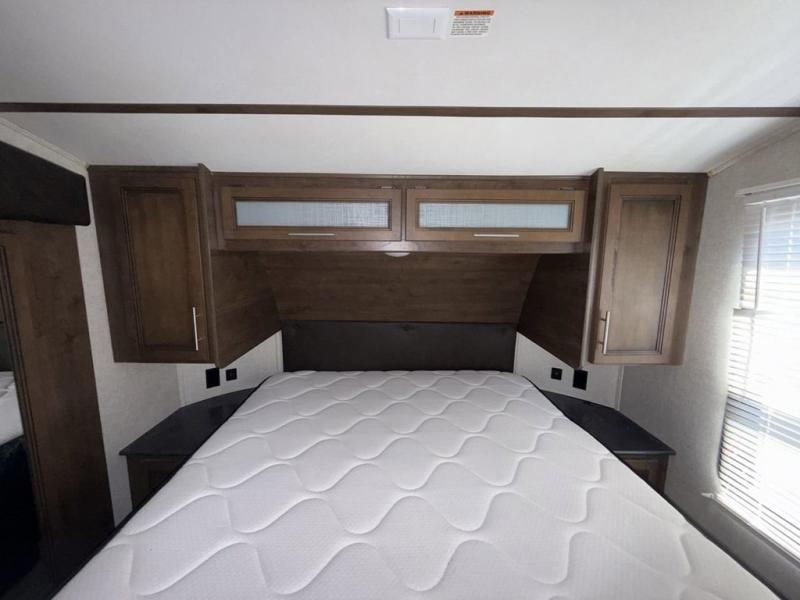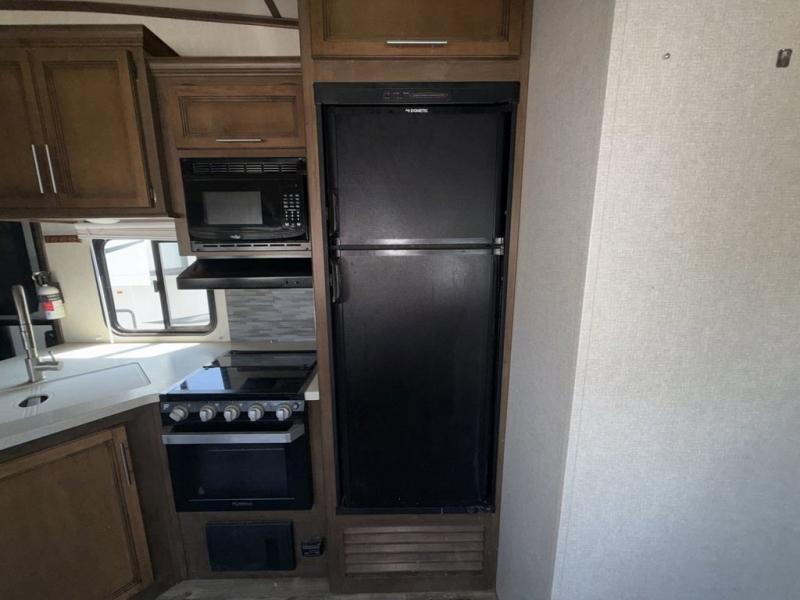 You won't have any trouble convincing your friends or family to join you on an adventure with this Cougar Half-Ton fifth wheel! Since this unit has both a full and a half bathroom, it will be easy for everyone to get ready in the morning, and the 21" Furrion range will allow you to whip up a full batch of pancakes for your guests. Store any leftovers in the 8 cubic foot refrigerator before heading out on your next exciting expedition. If you need your backpacks and hiking gear, you can grab them from the exterior pass-through storage.