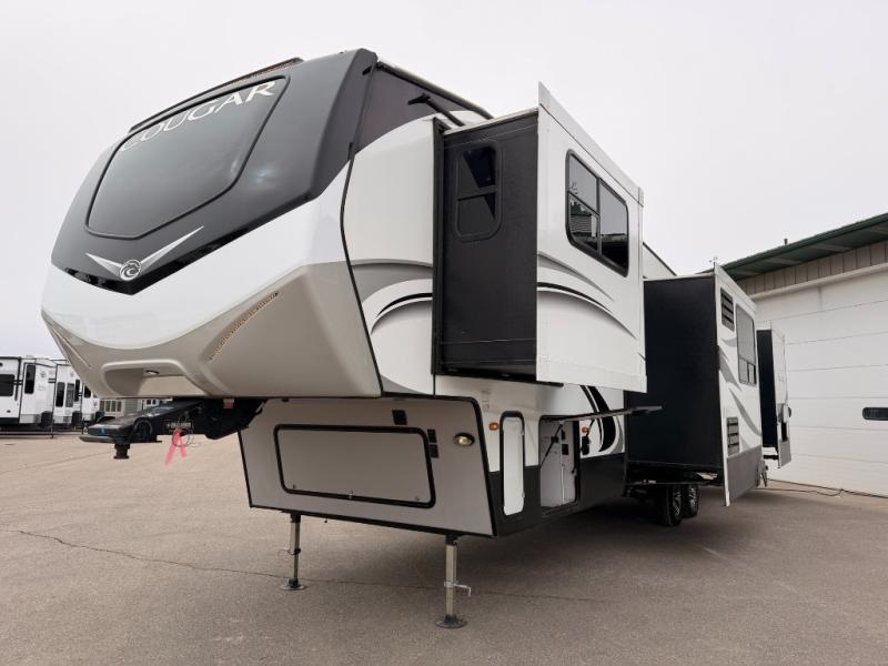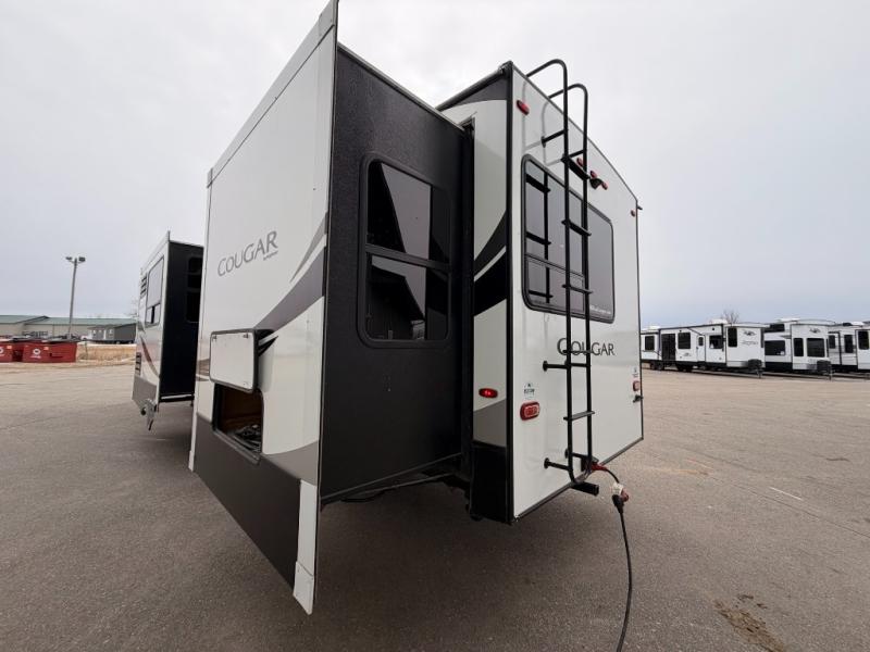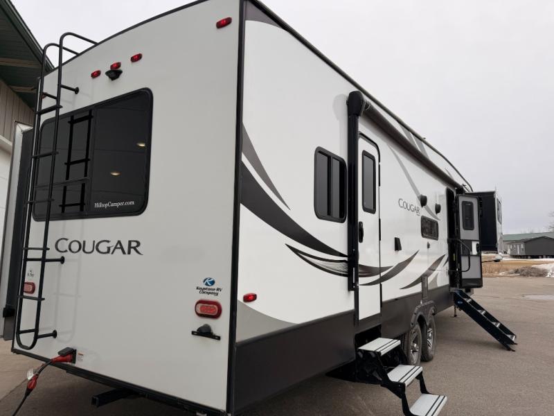 You can't imagine how much fun you'll have with this Cougar fifth wheel! A separate living room up front with a 50" LED HDTV, a fireplace, dual sleeper sofas, and theater seating will give you a great place to cozy up and relax. In the back, you'll find a master suite that has the second exterior entry door so that you can quietly sneak out for a morning run. Forget about the old struggles of making dinner while camping because with the undermount sink and 21" Furrion range, it will be easy to enjoy healthy eating while away from home. There are so many more features you are going to love!