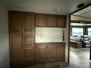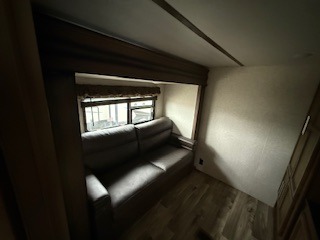 However you vacation, do it in style with this Cougar fifth wheel! Spend your afternoons relaxing underneath the two power awnings while you use the outdoor grill to prepare dinner. You can easily stow away your camping chairs in the pass-through compartment along with other outdoor gear when you need to tidy up. Once you head inside, you'll find a loft area above the extra room that can be utilized as a living area, an office and/or a bedroom thanks to the sleeper sofa, the desk and the wardrobe. You can even choose to stay up late and watch a movie on the 50" LED HDTV while you lounge on the tri-fold sleeper sofa or theater seating before heading to your own queen bed, or choose the king bed option.