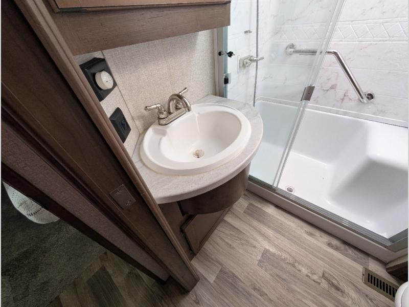 Whatever you do, do it in style with this Cougar Half-Ton fifth wheel! A private bedroom up front will allow you to grab a new outfit from the wardrobe slide and change in privacy before heading out on an adventure. If you'd rather stay inside, you can sit back on the 68" tri-fold sleeper sofa and relax. You can also have a good lunch while you stay inside because the 21" Furrion range with Piezo ignition will make it easy to prepare any of your favorite meals.