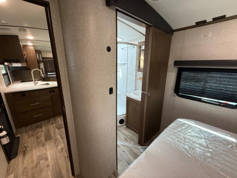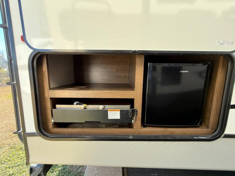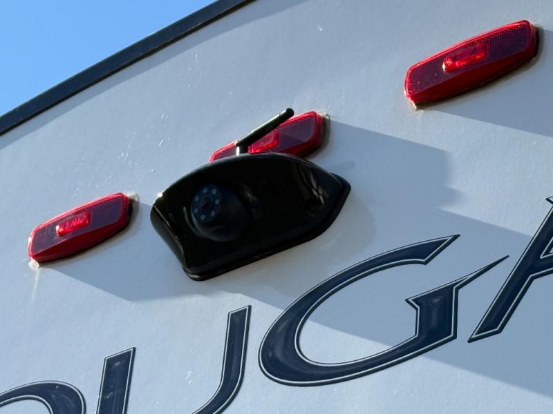 As you explore all that nature has to offer, you'll appreciate all that this Cougar Half-Ton travel trailer has to offer, as well! A master suite up front will provide the ultimate luxury as you drift off to sleep each night, and you'll be able to conveniently sneak into the radius shower when you wake up in the morning. Choose to prepare breakfast outside underneath the sunshine at the outdoor grill, and if you need a little shade while you eat, the 16' power awning will do the trick.