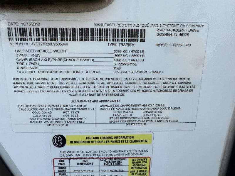 Used 2020 Keystone RV Cougar Half-Ton 27RES Travel Trailer