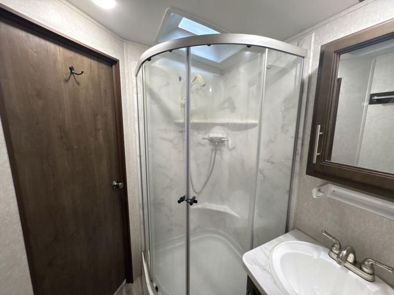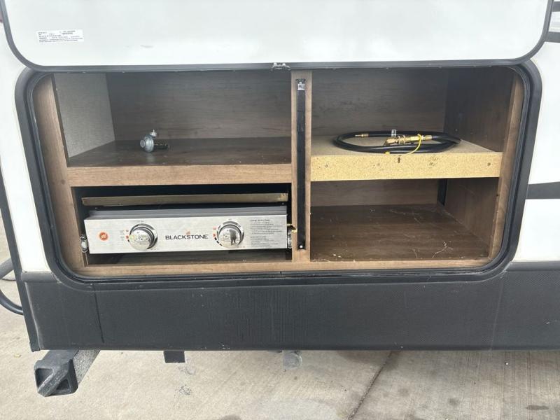 As you explore all that nature has to offer, you'll appreciate all that this Cougar Half-Ton travel trailer has to offer, as well! A master suite up front will provide the ultimate luxury as you drift off to sleep each night, and you'll be able to conveniently sneak into the radius shower when you wake up in the morning. Choose to prepare breakfast outside underneath the sunshine at the outdoor grill, and if you need a little shade while you eat, the 16' power awning will do the trick.