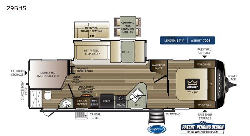 Keystone Cougar Half-Ton travel trailer 29BHS highlights:
