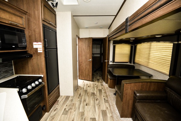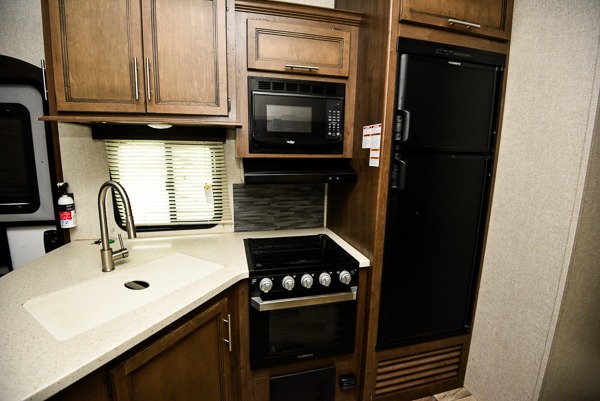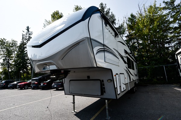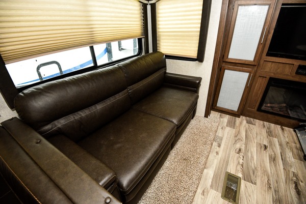 You won't have any trouble convincing your friends or family to join you on an adventure with this Cougar Half-Ton fifth wheel! Since this unit has both a full and a half bathroom, it will be easy for everyone to get ready in the morning, and the 21" Furrion range will allow you to whip up a full batch of pancakes for your guests. Store any leftovers in the 8 cubic foot refrigerator before heading out on your next exciting expedition. If you need your backpacks and hiking gear, you can grab them from the exterior pass-through storage.