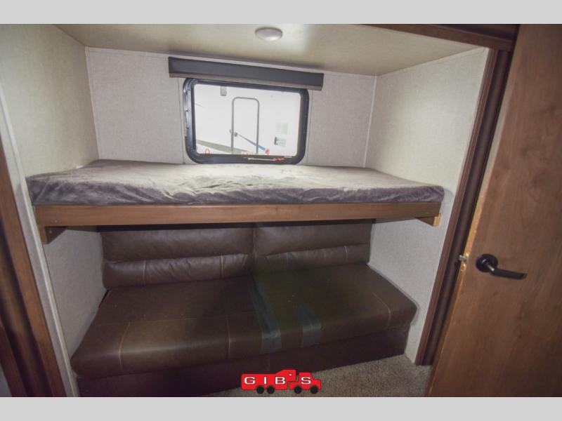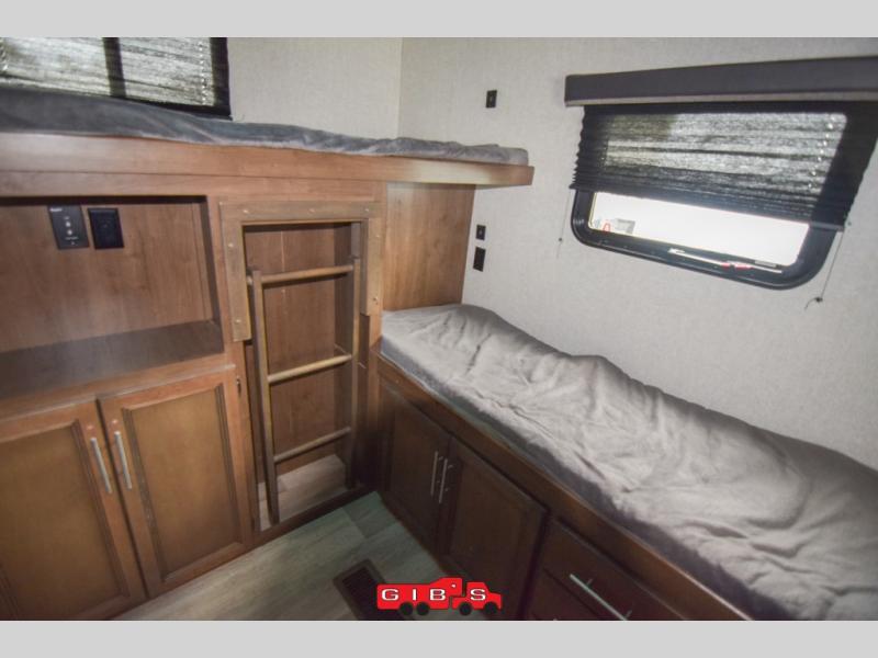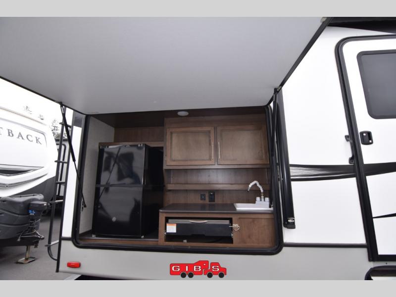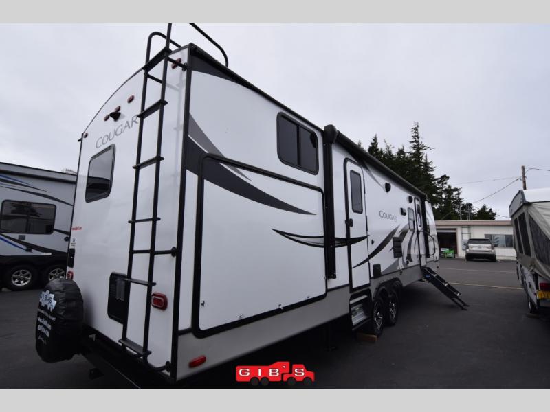 Imagine loading up the family and heading out in this Cougar Half-Ton travel trailer to your favorite campground. If you enjoy the great outdoors, the capital grill, mini refrigerator, and sink provide an outside cooking spot you are sure to use often. Inside the rear bunkhouse, you will find sleeping space and a hangout room for the kiddos and their friends. There are triple bunks and a sofa in this private room. You can access the full bath from the bunkhouse or from outside thanks to the two entry doors into the trailer. You will find plenty of space to relax inside this trailer with the two slide outs, and you can also relax outside underneath the 19' power awning.