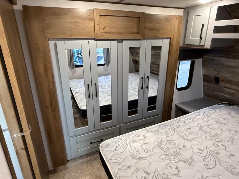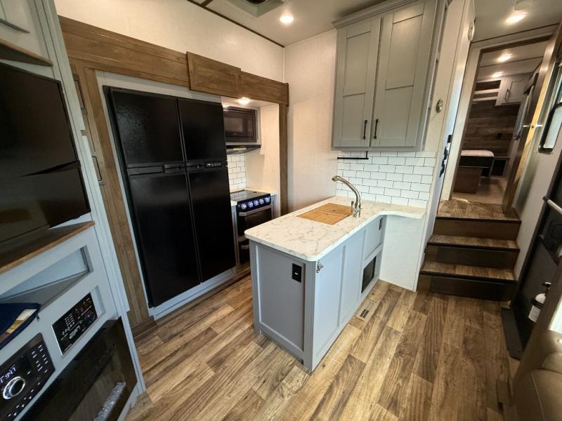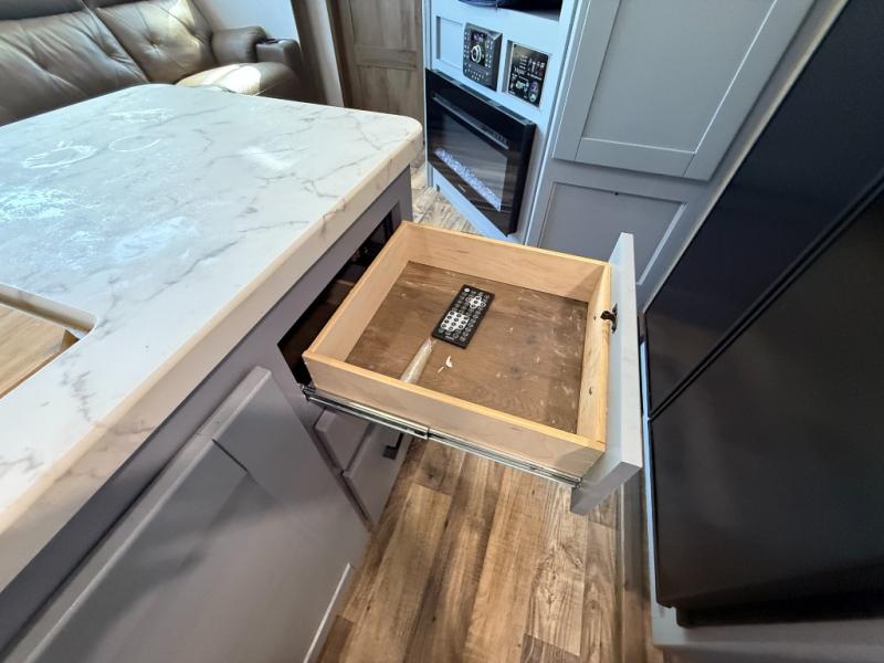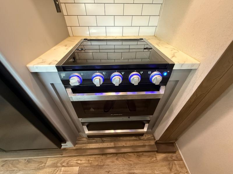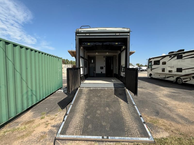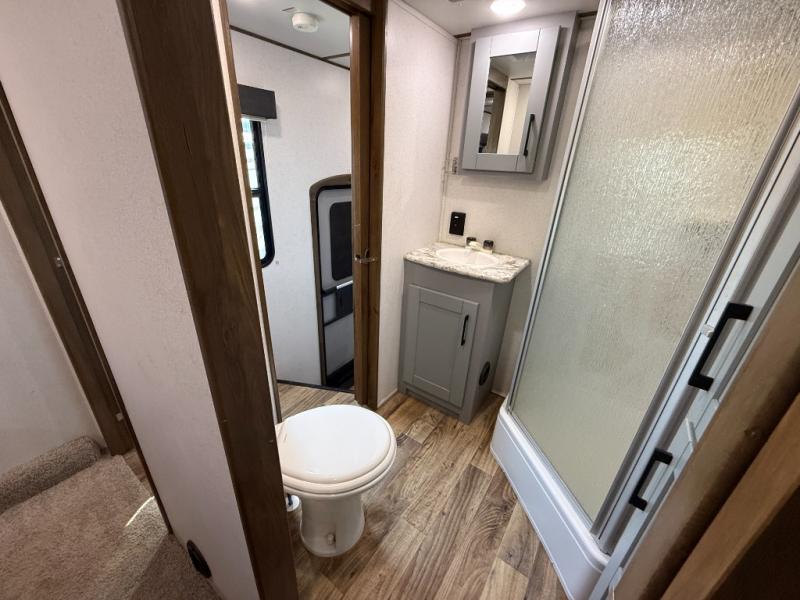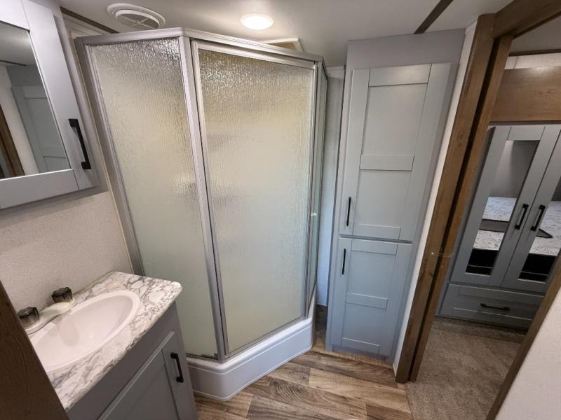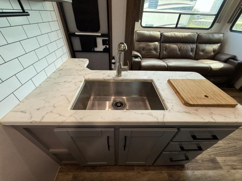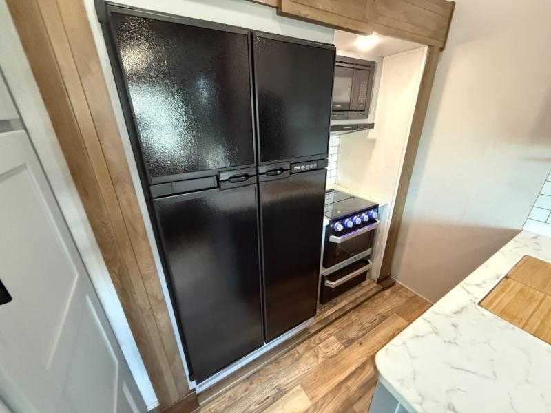Keystone specifically keeps you, the customer, in mind as they construct and build each Fuzion Impact Edition toy hauler. The 100" wide body and 5k interlock system with frame-welded tie-downs ensure convenient and secure shipment of your favorite ride-on toys. You will appreciate the Keystone Exclusives, such as the Tru-fit slide construction, the in-floor heating ducts, 4G LTE and Wi-Fi prep, plus many more hassle-free features. Each model includes a 30-gal. fuel station with a 12V pump and a static line and the Omni-Chill A/C system, which is the highest-performing energy-efficient system available. Inside, you will love the hardwood cabinetry, pressed countertops in the kitchen, and large tinted safety-glass panoramic windows to let natural light in. These toy haulers also feature plenty of storage space for all your belongings, including under-bed storage and a lighted pass-through compartment!