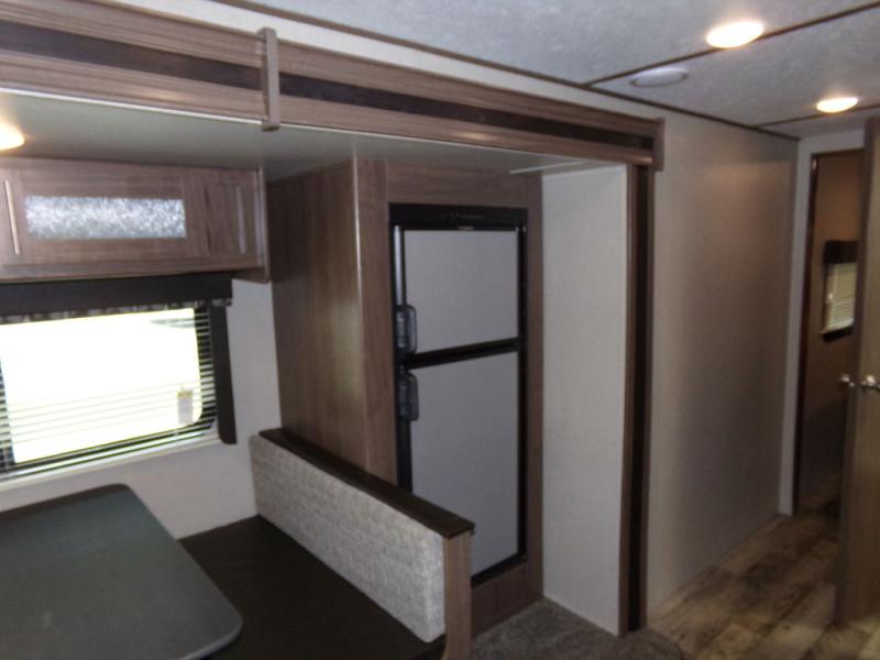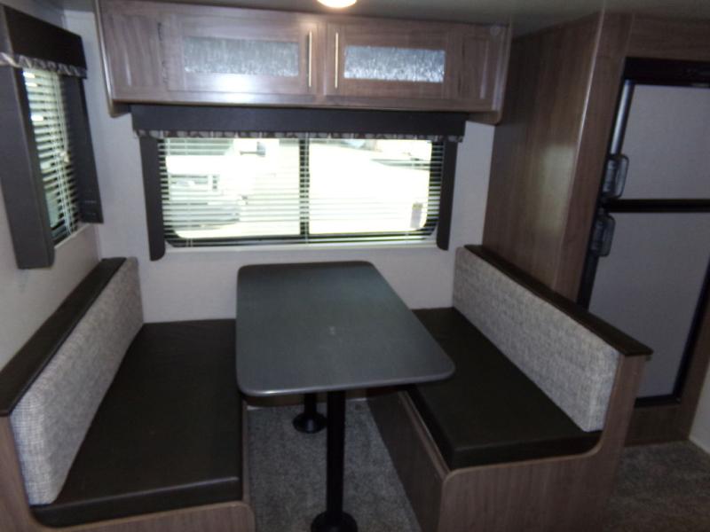 With two entry doors, you now are able to slip out in the early morning for a walk or a fishing trip without waking your sleeping campers in this single-slide Hideout travel trailer. Enjoy visiting with your family in the rear living area and sleeping peacefully at night in the front private bedroom where you will find a queen-size bed, two closets, and a private entrance. Additional sleeping space can be found at the booth dinette for guests traveling with you.